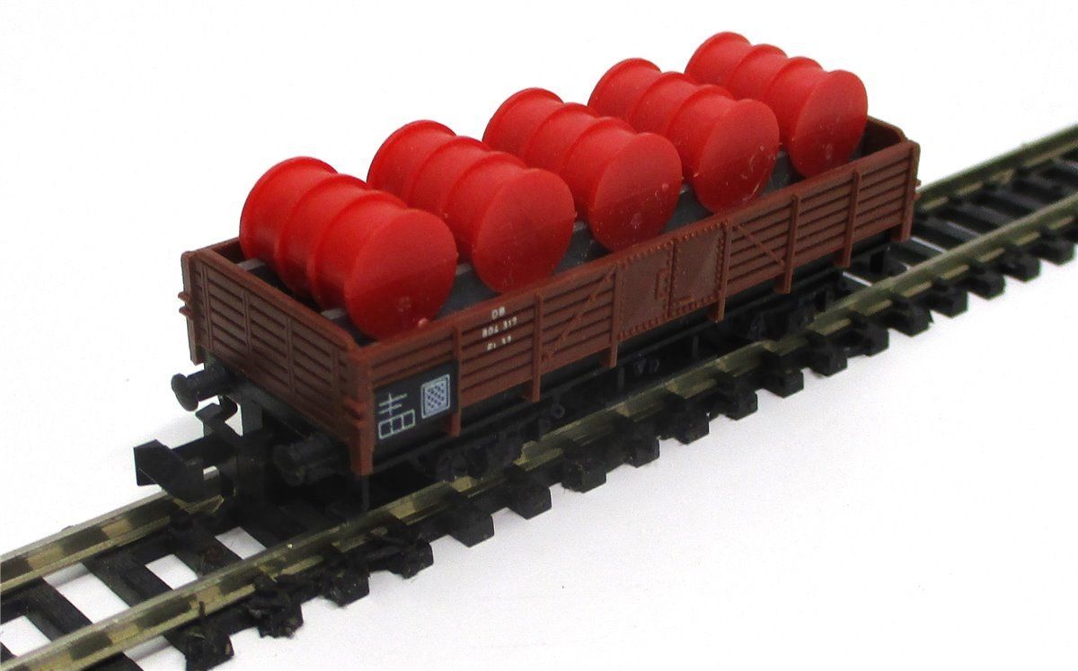 Minitrix N 13513 Mittelbordwagen rote Fässern DB (6220)