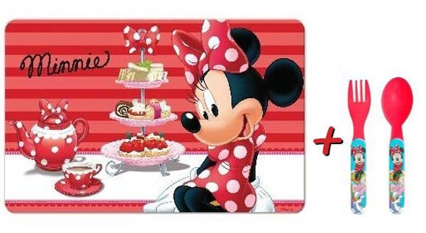 Minnie Maus Frühstücks-Set (Besteck + Platzdeckchen) Set Kinder Gabel Löffel