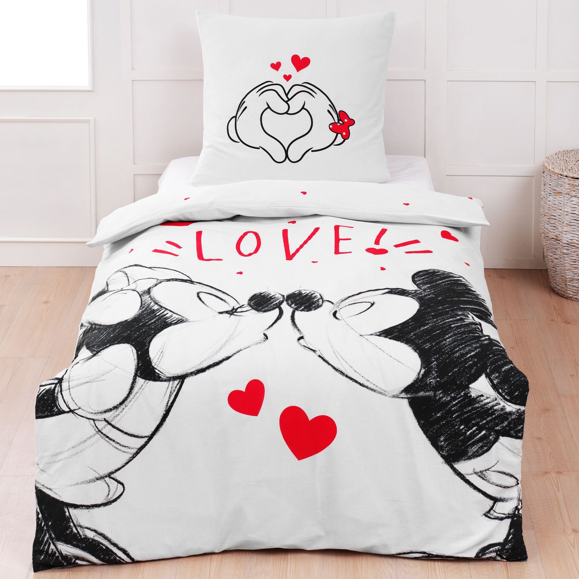 Minnie Mouse und Mickey Mouse Love Bettwäsche Linon / Renforcé
