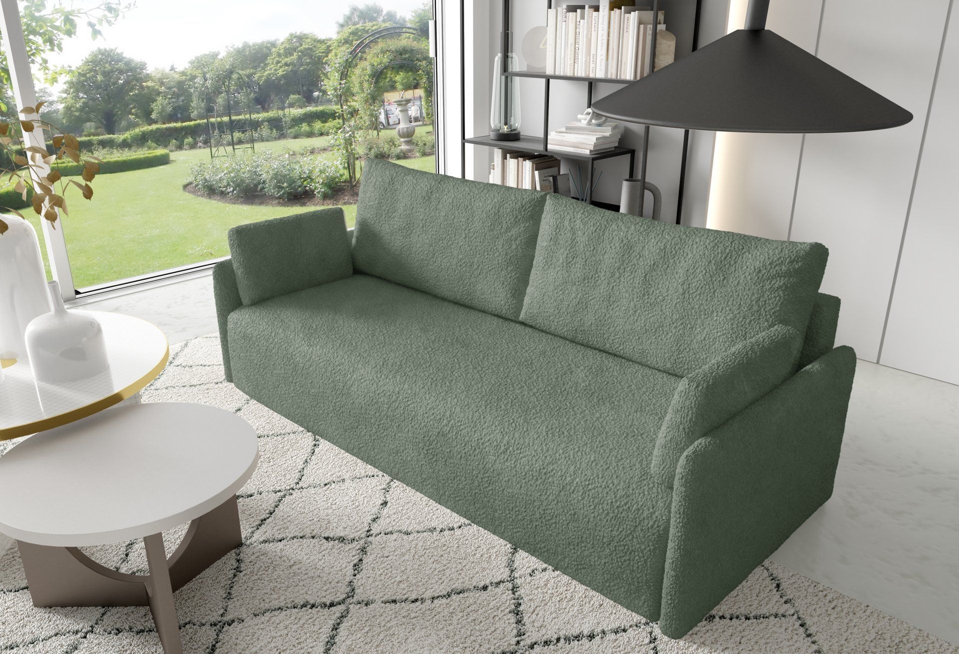 Mino 3-Sitzer Schlafsofa Abriamo Bouclé Helles Grün Abriamo 10 - Helles Grün