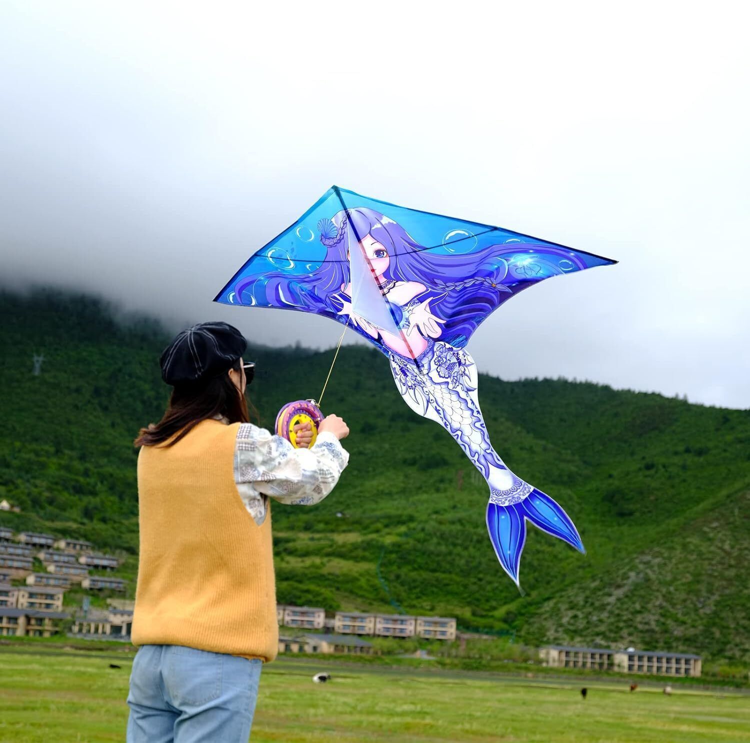 Mint's Colorful Life Meerjungfrau Drachen Flugdrachen für Mädchen-Kinder, am Produktbeschreibung: Nehmen Sie diesen Drachen mit in Ihren Strandurlaub! Genießen Sie die wunderbare Familienzeit mit Ihrer Tochter oder Enkelin! Ja, und deine Nichte! Dieser große Drachen ist für Kinder und Erwachsene gee