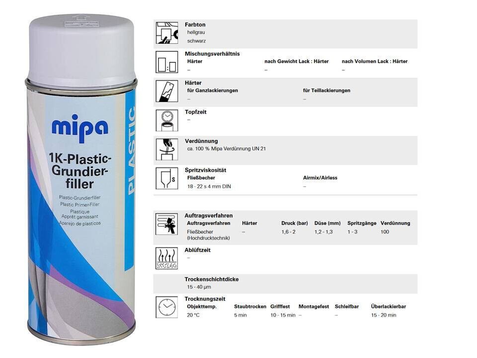 Mipa Mipa 1K Plastic Grundierfiller Spray 400ml Kunststoffprimer Autolack