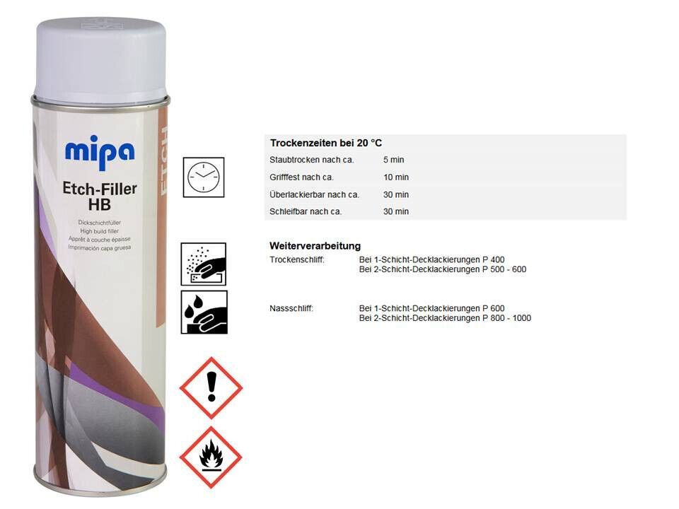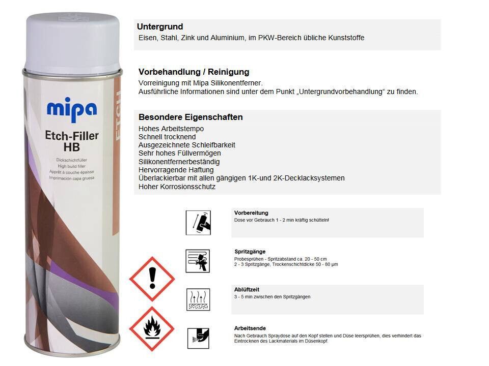 Normal 0 false 21 false false false DE X-NONE X-NONE MicrosoftInternetExplorer4 Mipa Etch-Filler - Dickschichtfüller hellgrau Lieferumfang: 1x 500ml Spray Mipa Etch-Filler HB Spray ist eine hervorragende Einkomponenten-Korrosionsschutz-Grundierung mit ausgezeichneter Haftung und sehr hoher Füllkraft