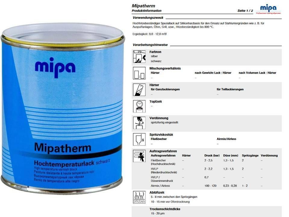MIPA Mipa Mipatherm schwarz 750ml hitzebeständig 800°C Thermolack Ofenlack
