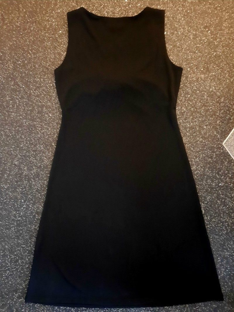 Miss Damen Girly Trendy Midi Kleid knie lang 40 schwarz Raff Ausschnitt Neu