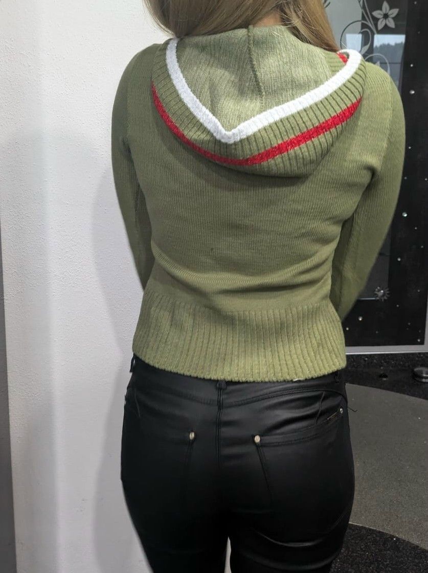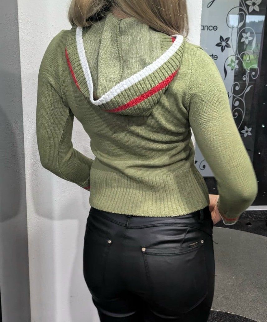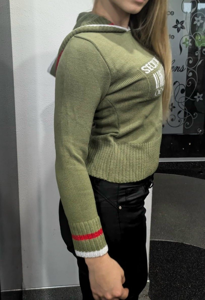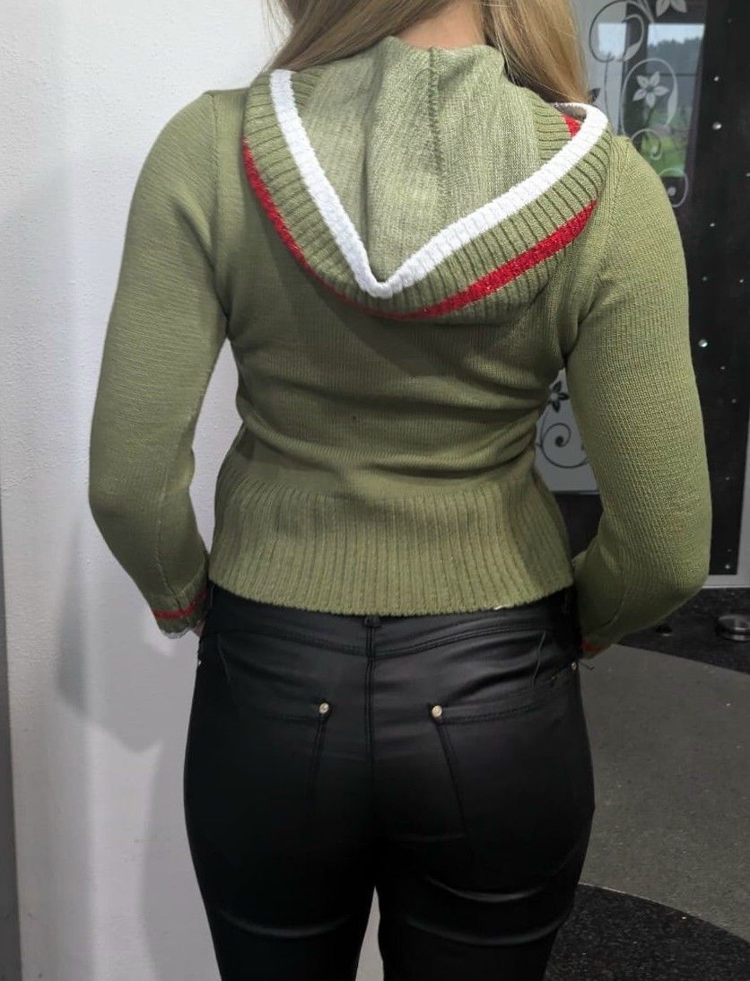 Miss Damen Trendy Strick Pullover Pulli Hoody Glitzer Lurex Top 34/36/38 grün
