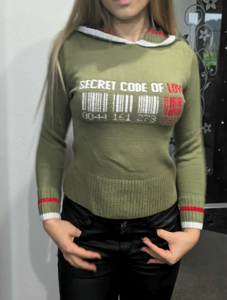 Stylischer Strick Pullover Glitzer Lurex Pulli mit Hoody Style eingewebter Glitzer Lurex Secret Code of Love EAN Schriftzug figurbetonter Schnitt elastisches Material Eye Catcher Hot & Sexy In-Style Look _____________________________ Einheitsgröße - Uni - Ohne Größe Maße in ungedehnten Zustand l
