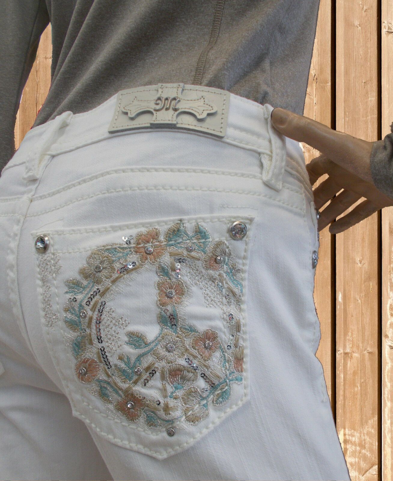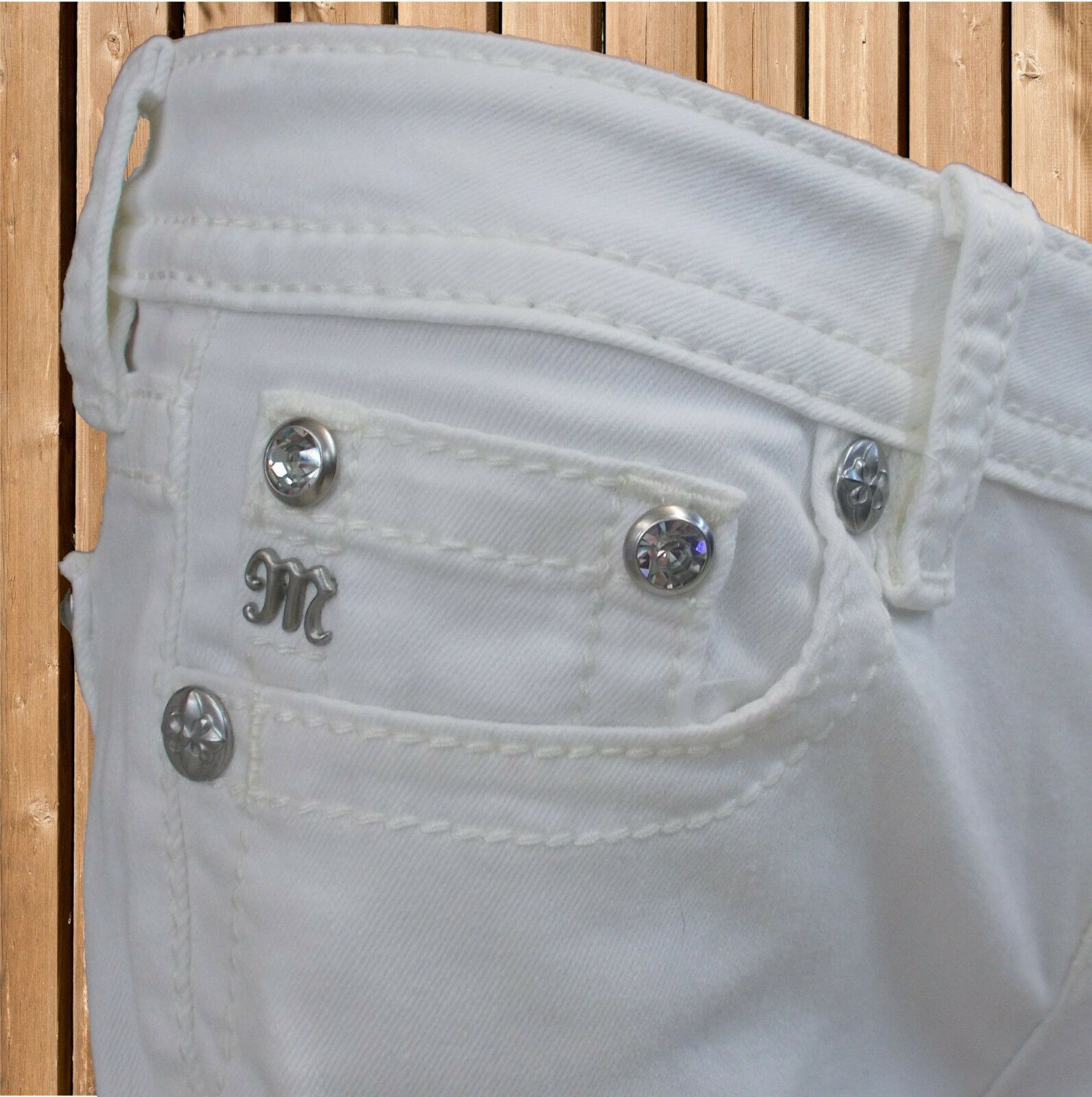 Miss Me Damen Jeans in weiß Skinny · 5-Pocket-Jeans · mit schmalen Beinen · niedriger Bund · Länge 30 inch · Gesäßtaschen mit Applikation · mit Ziernähten · Frontreißverschluss · Schnitt der Hose: Skinny Materialzusammensetzung: 78 % Baumwolle,