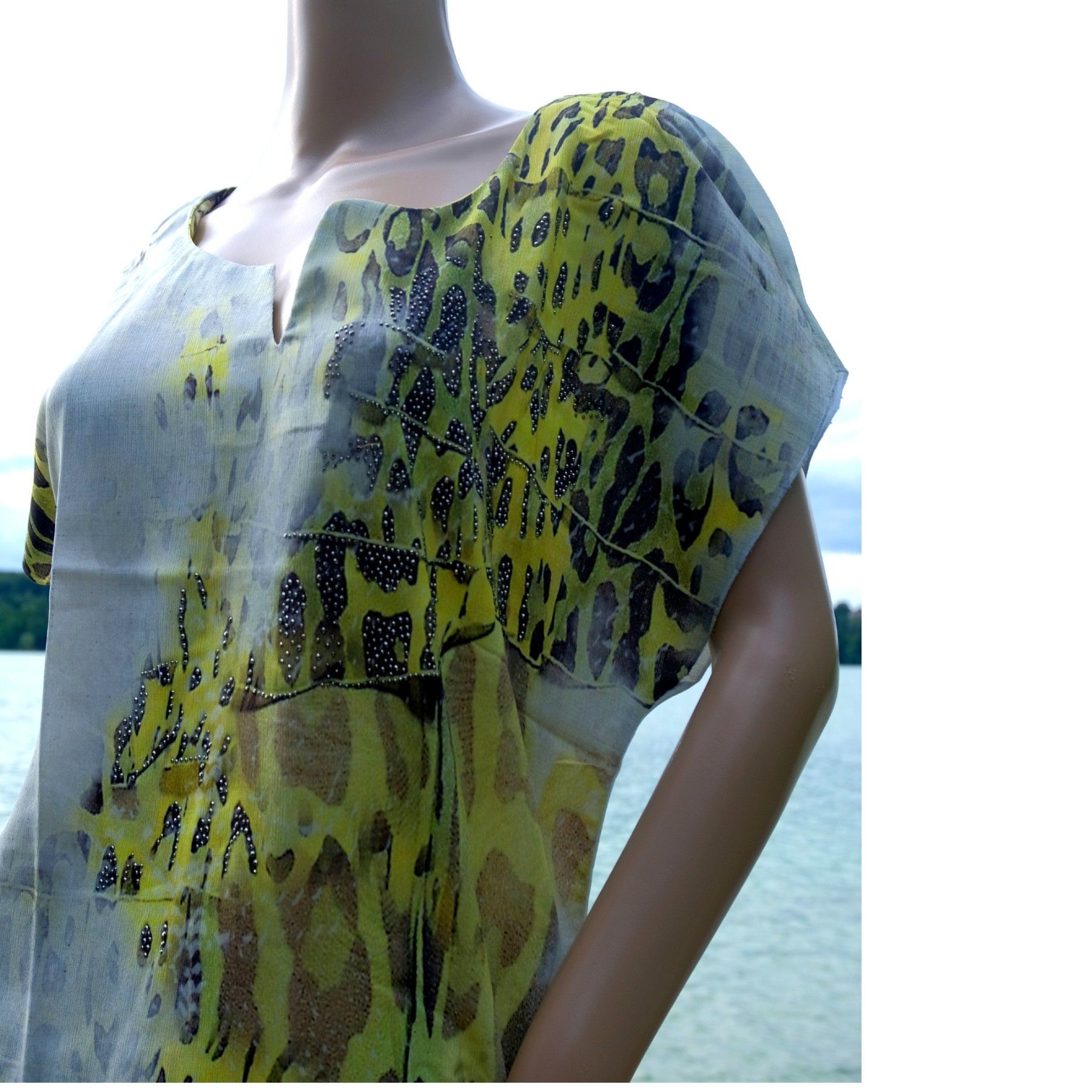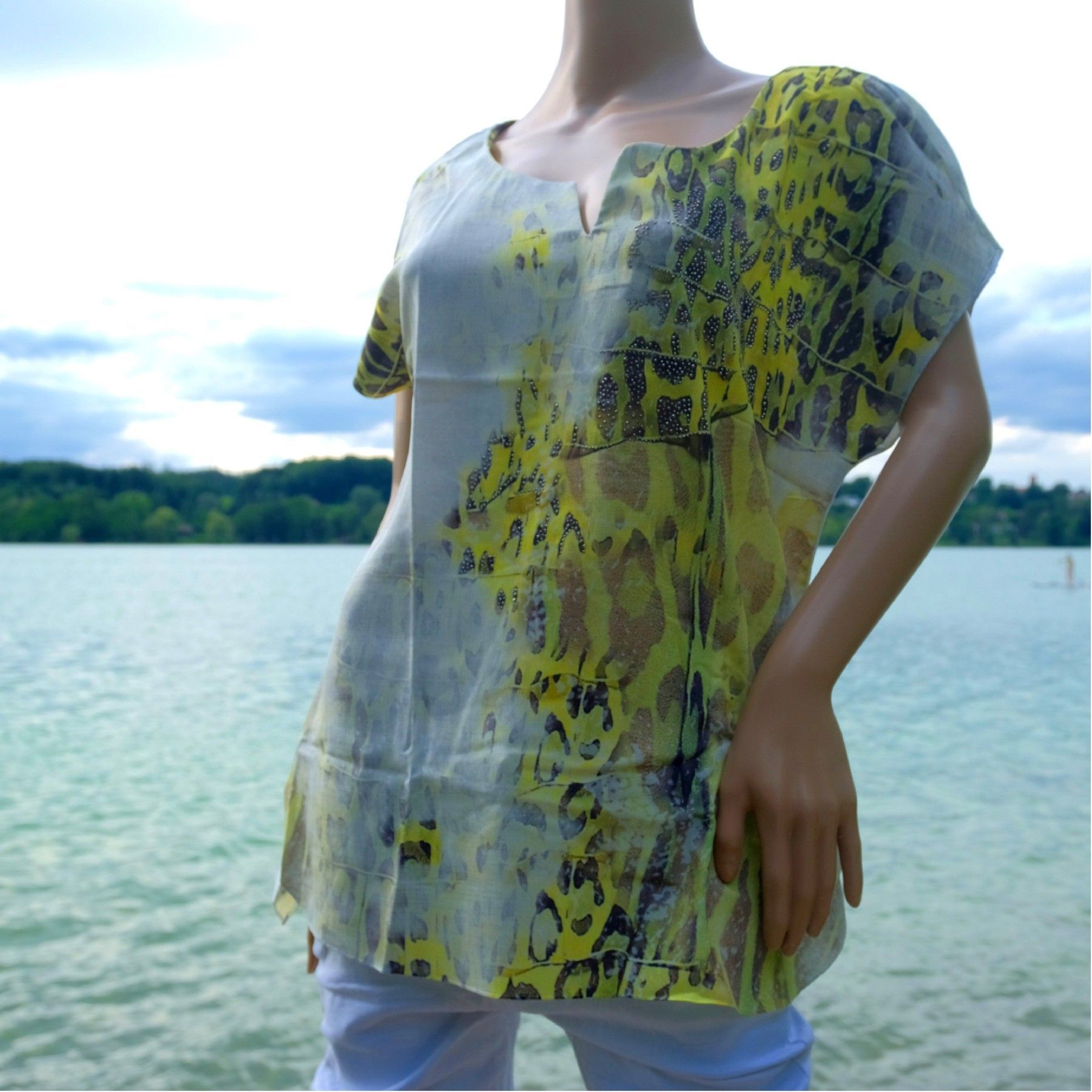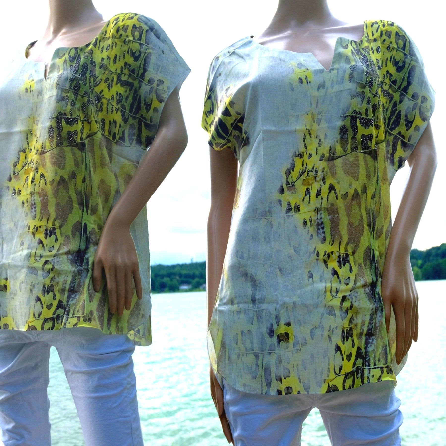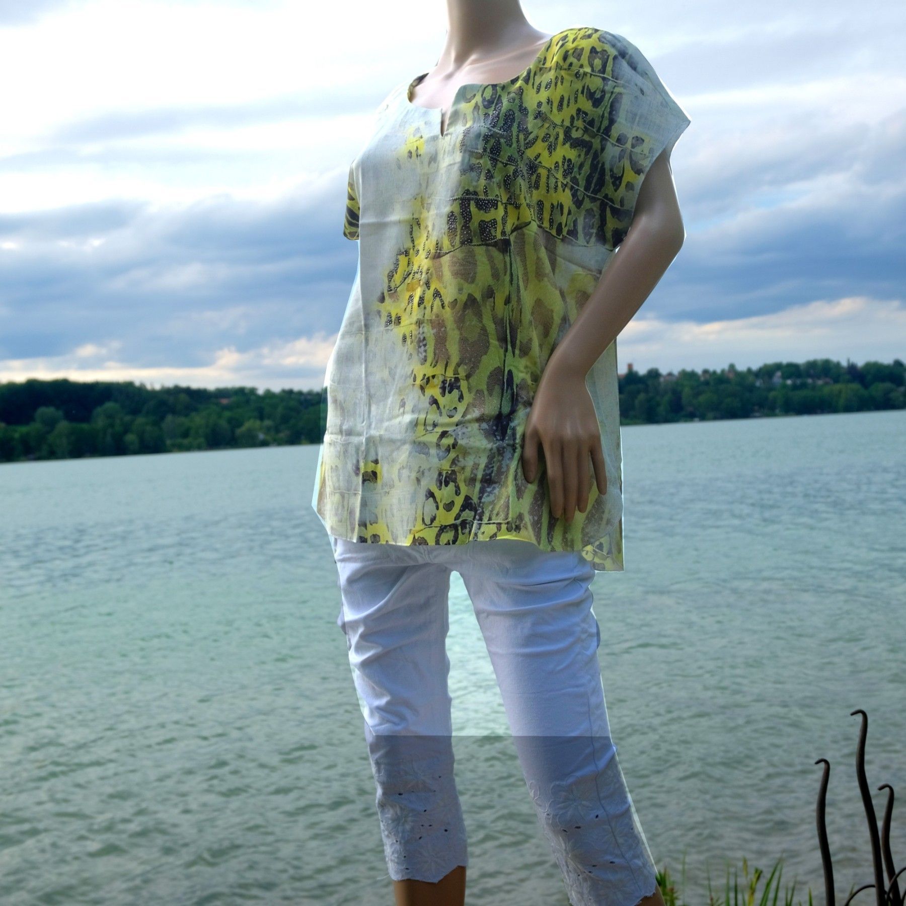 Missy T-Shirt Tunika gelb-schwarz Gr. XL Strass in grau Damen Frauen u. Mädchen