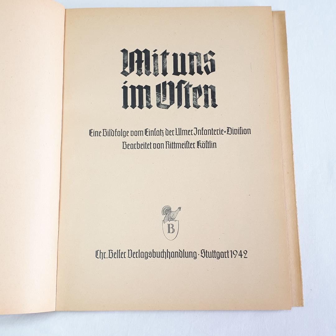 Mit uns im Osten - Eine Bildfolge vom Einsatz der Ulmer Infanterie-Division R. * mit Schutzumschlag * große,farbige Karte ist im Anhang anbei * bearbeitet von Rittmeister Köstlin * Chr.Belser Verlagsbuchhandlung Stuttgart, 1942 * 93 Seiten Zustand: gut - gebraucht mit einigen Gebrauchsspuren (die Seiten weisen durchweg Bräunungsspuren auf, kleinere Schmutzpunkte kommen vor)