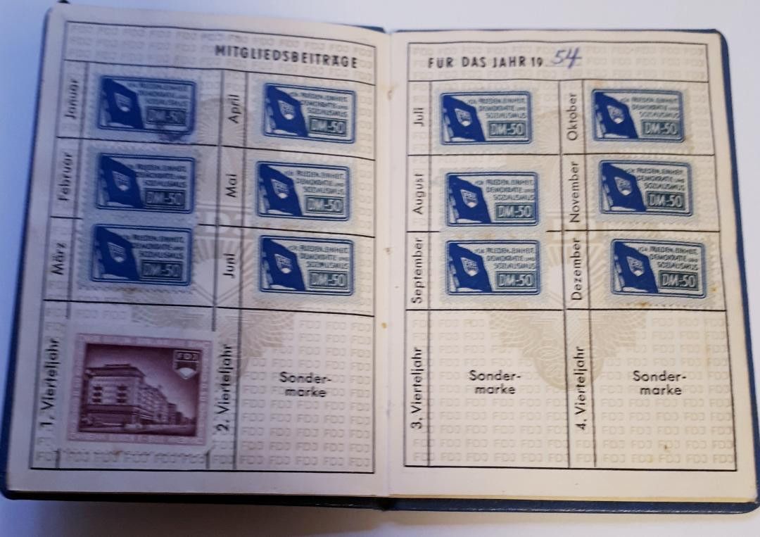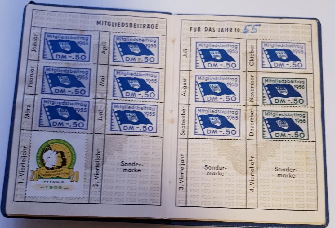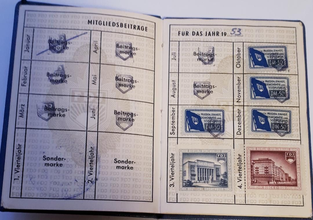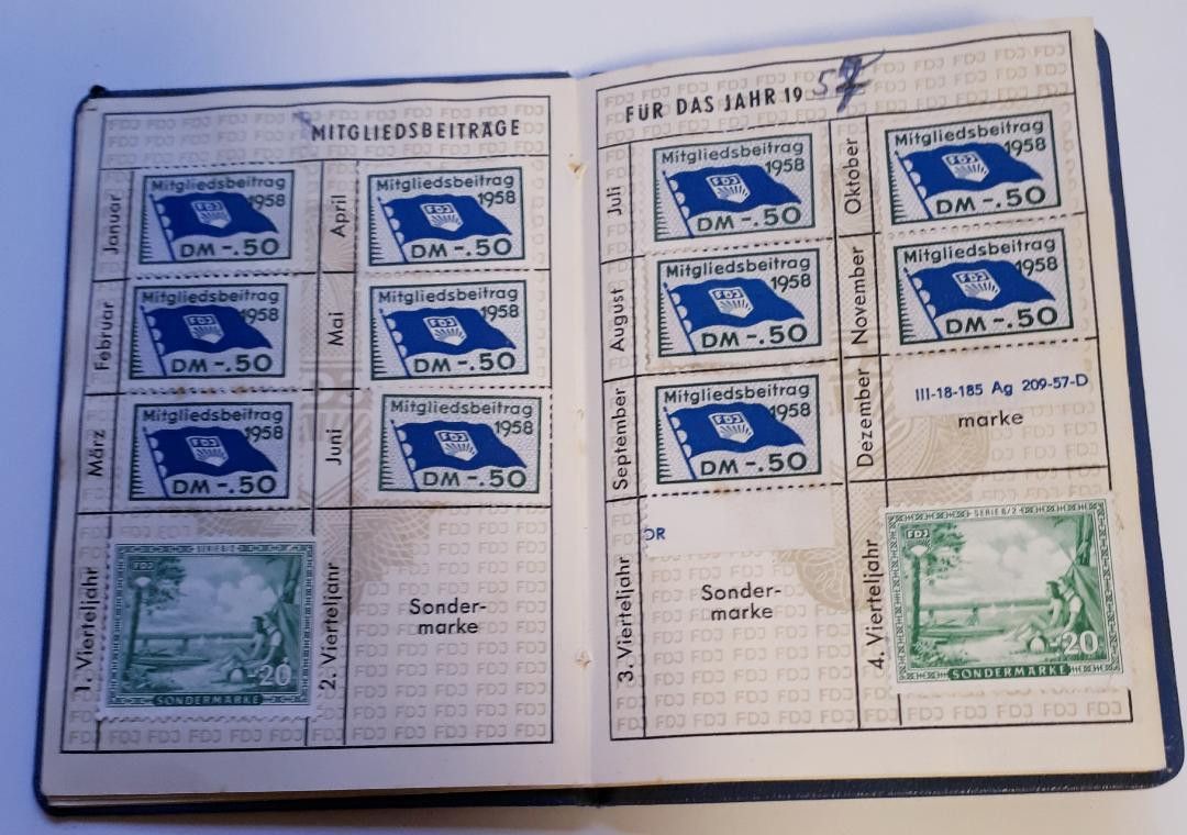 Mitgliedsbuch FDJ 1953 - 1957 Freie Deutsche Jugend