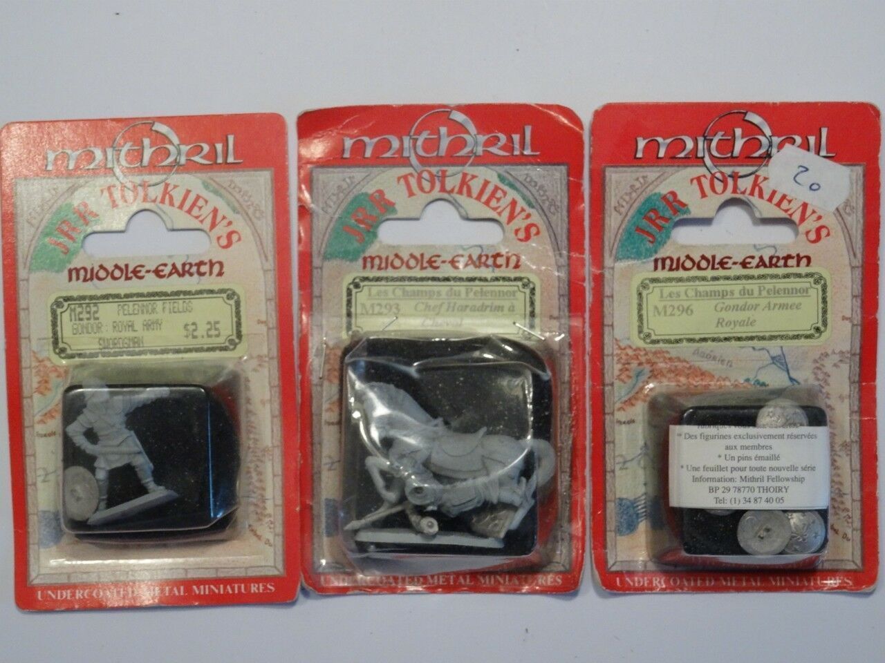 Artikel ist wie abgebildet, neu und Originalverpackt: Manche Blister sind auf Grund des alters etwas eingedrückt. Teilweise auch mit Klebeband verstärkt. Mithril M292: Gondorian Royal Army Swordsman Mithril M293: Haradan Mounted Chieftain Mithril M296: Gondor: Royal - Provincial Shields Gewicht Wigh