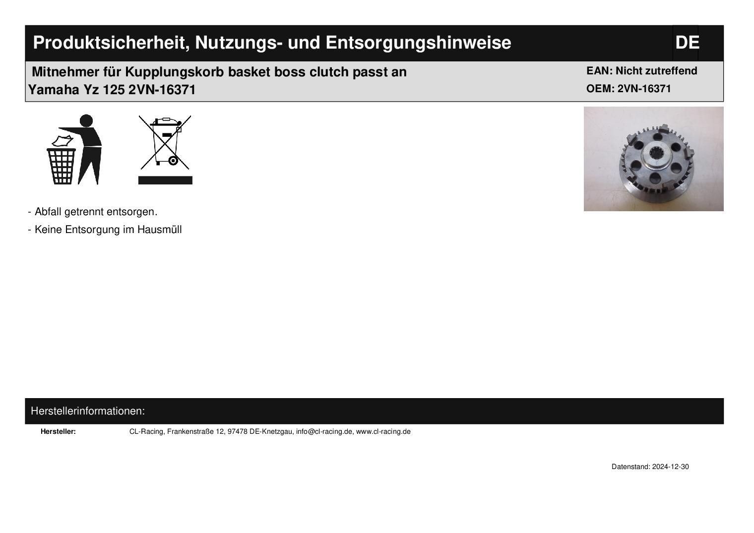 Mitnehmer für Kupplungskorb basket boss clutch passt an Yamaha Yz 125 2VN-16371