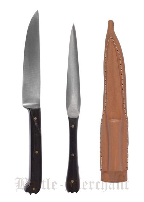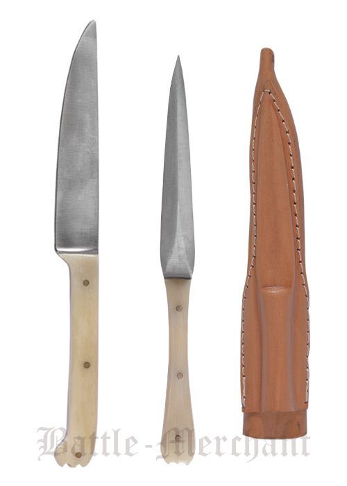 Mittelalter Essbesteck aus Edelstahl inkl. Lederetui, ca. 18 cm, Knochengriffe
