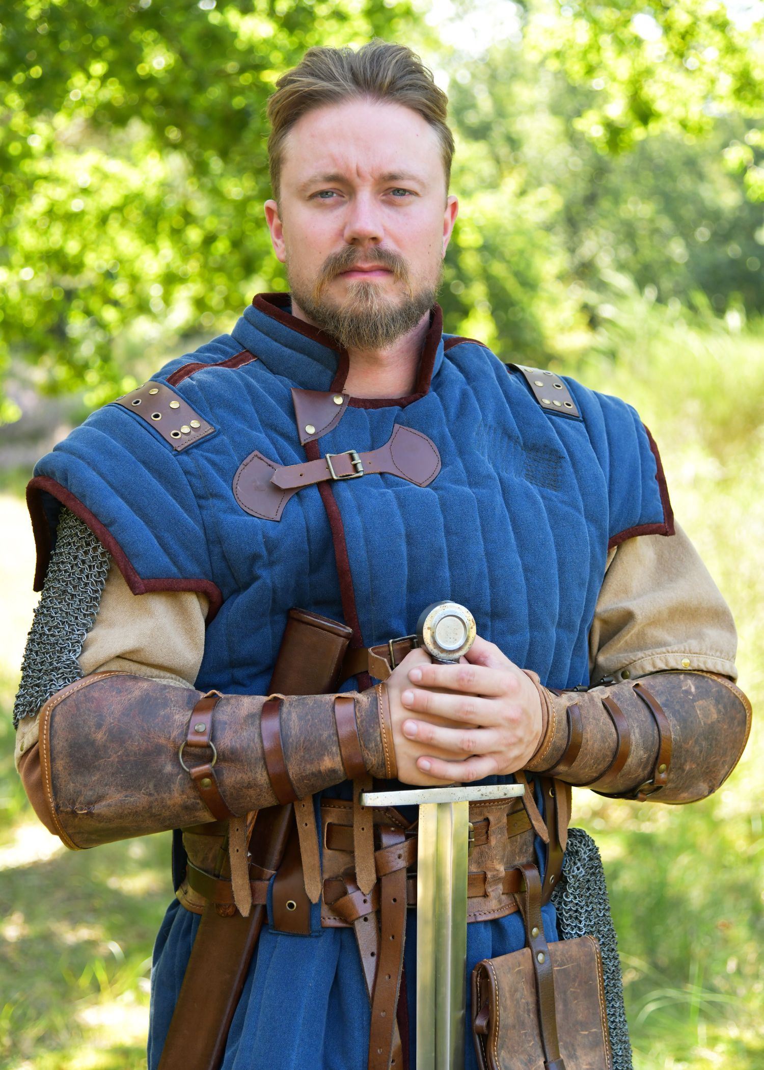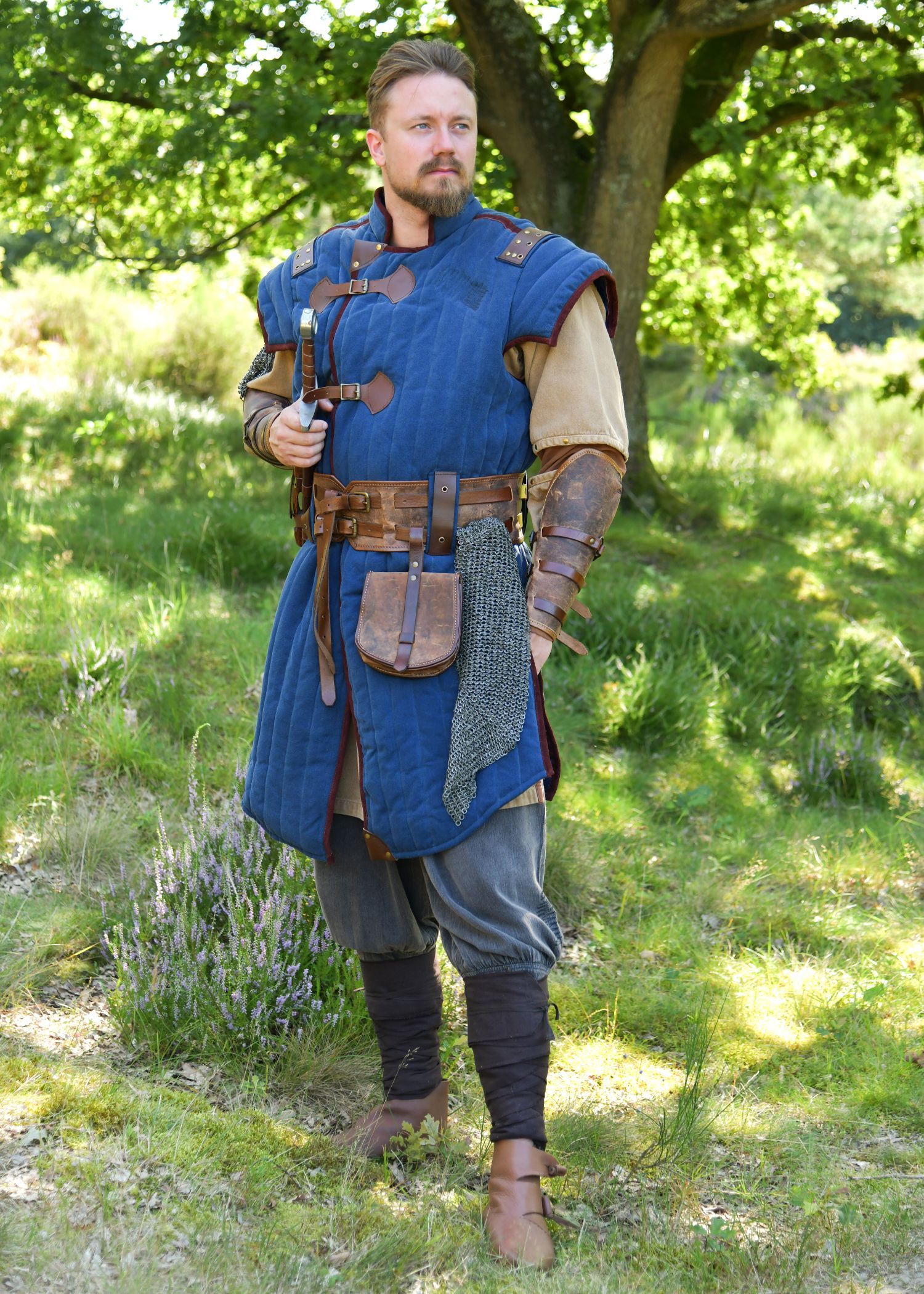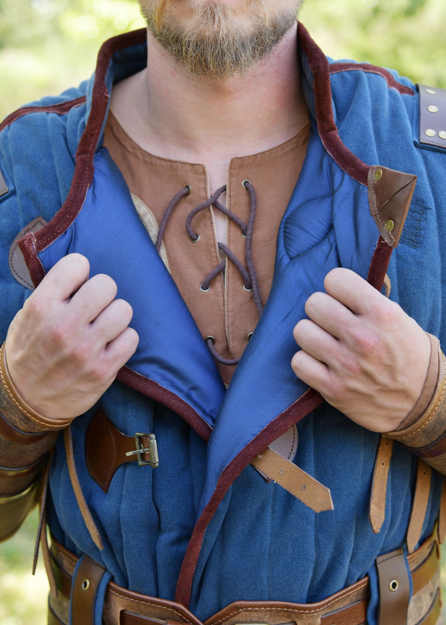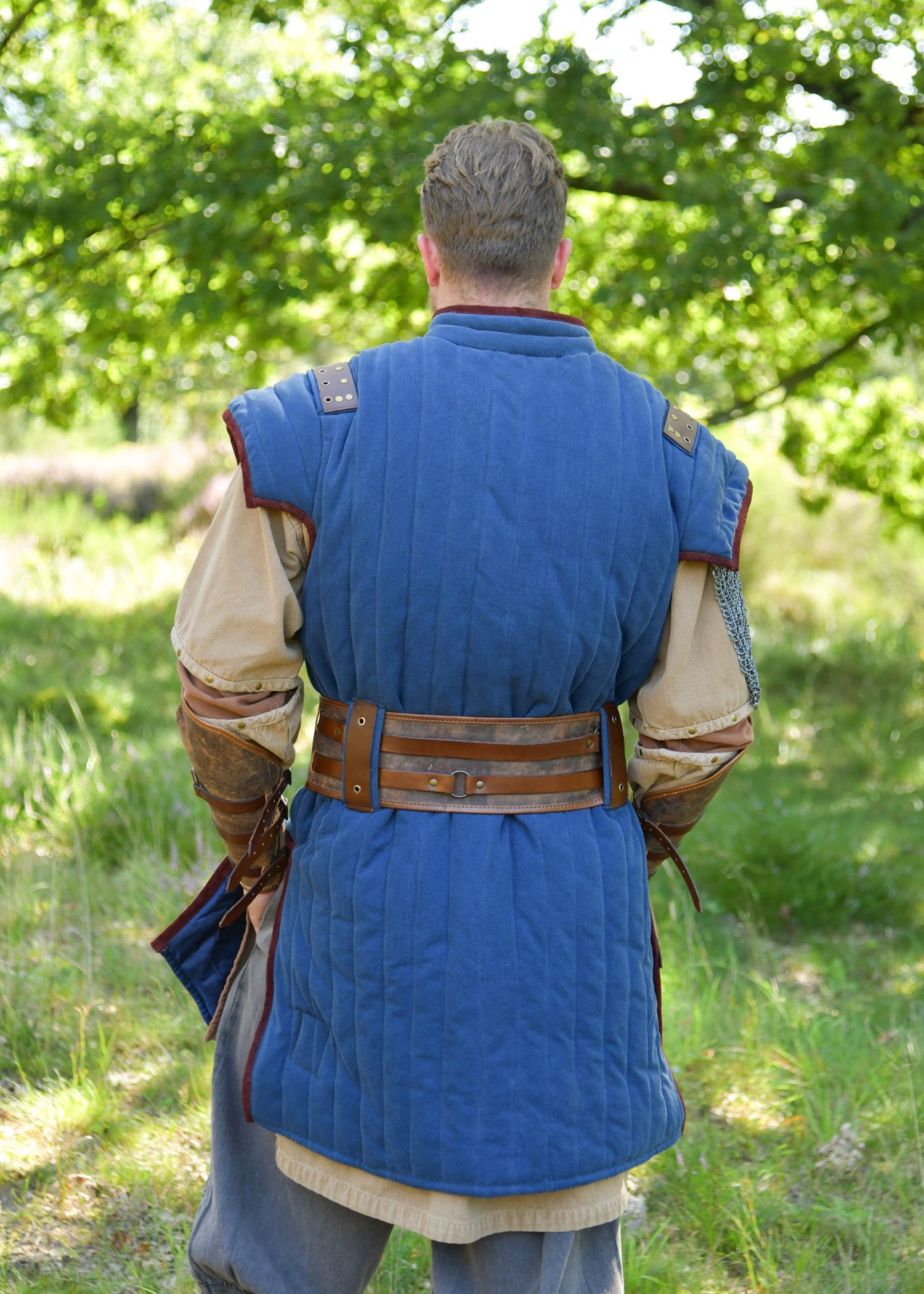 Mittelalter Gambeson Vari, Used-Look, blau - braun, Gr. XXL