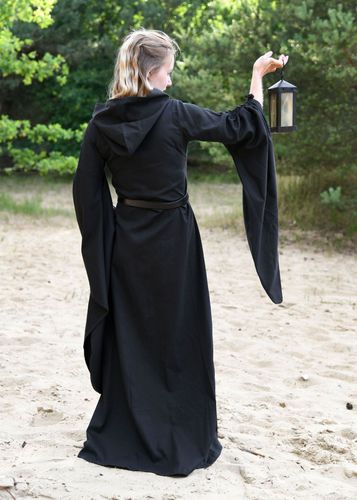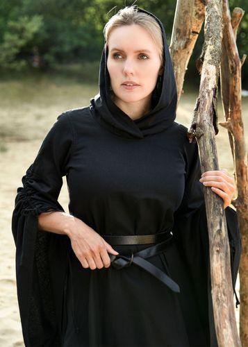 Mittelalter Kleid Isra mit Trompetenärmeln, schwarz