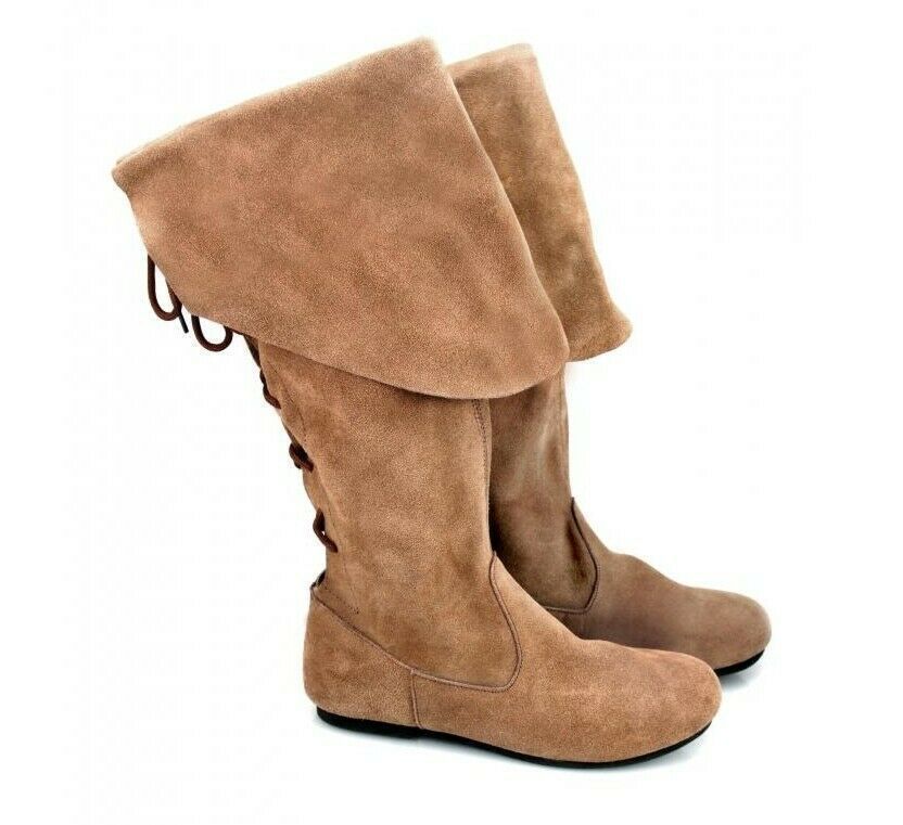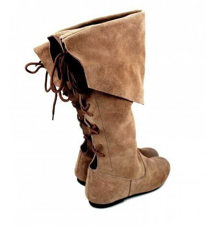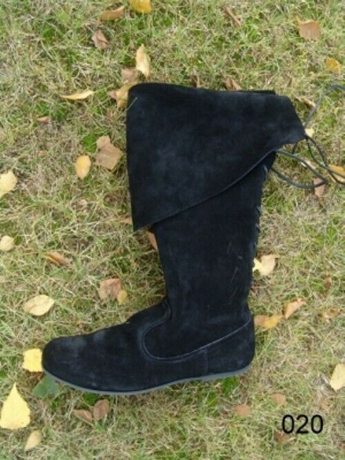 Mittelalter Stulpenstiefel Musketier Piratenstiefel Wildleder schwarz Größe 42