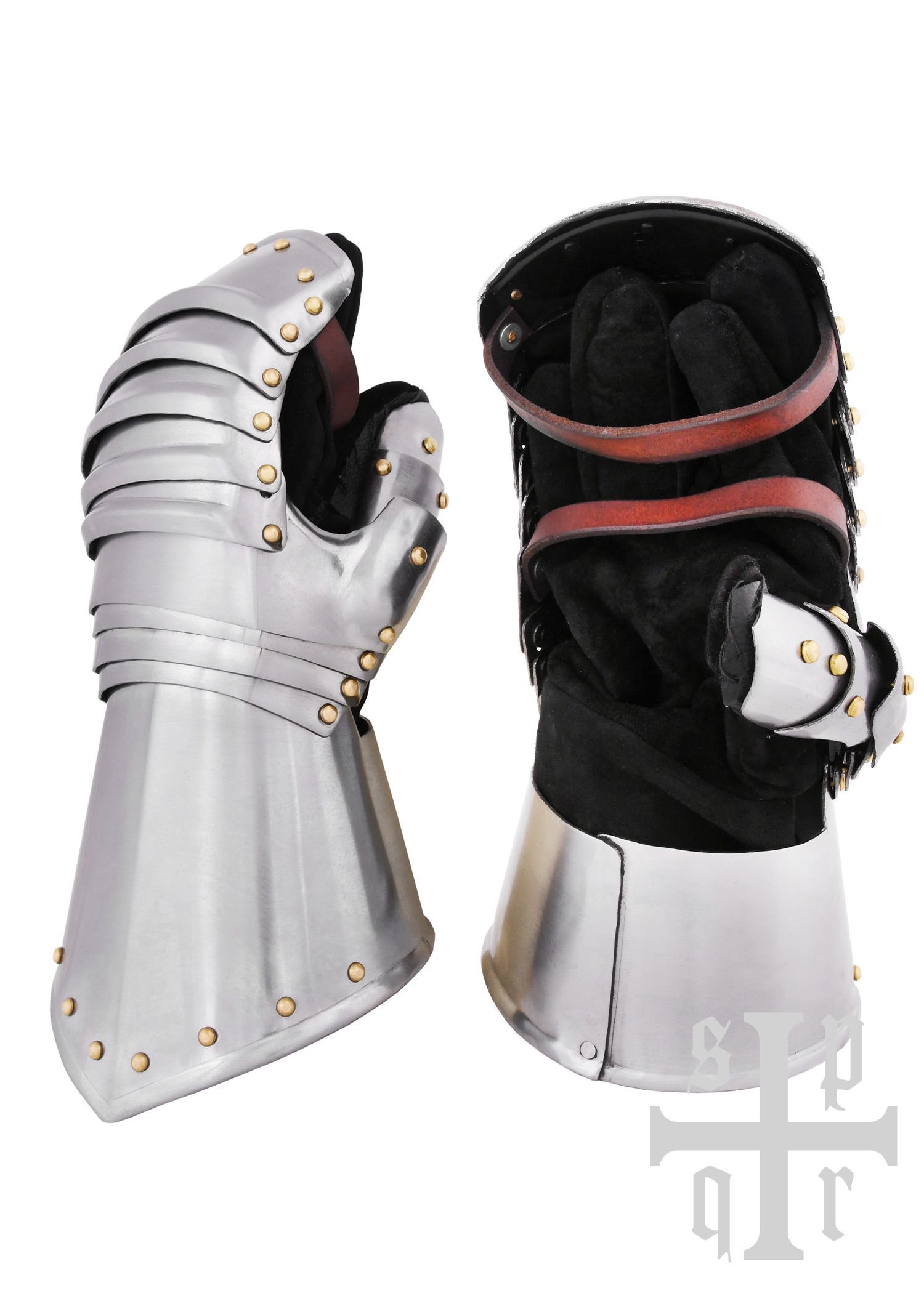 Mittelalterliche Hentzen, Plattenhandschuhe, 15.-16. Jh., 1,6 mm Stahl, Paar