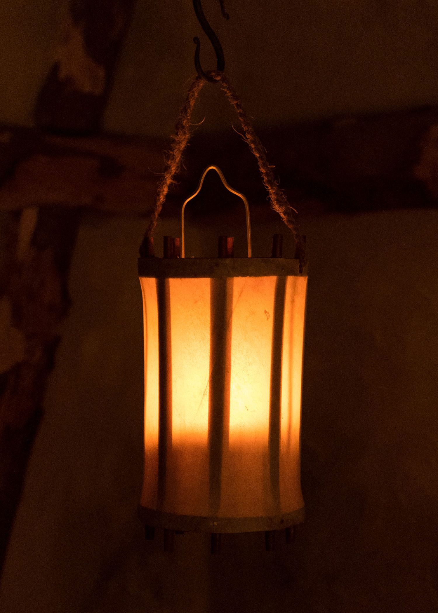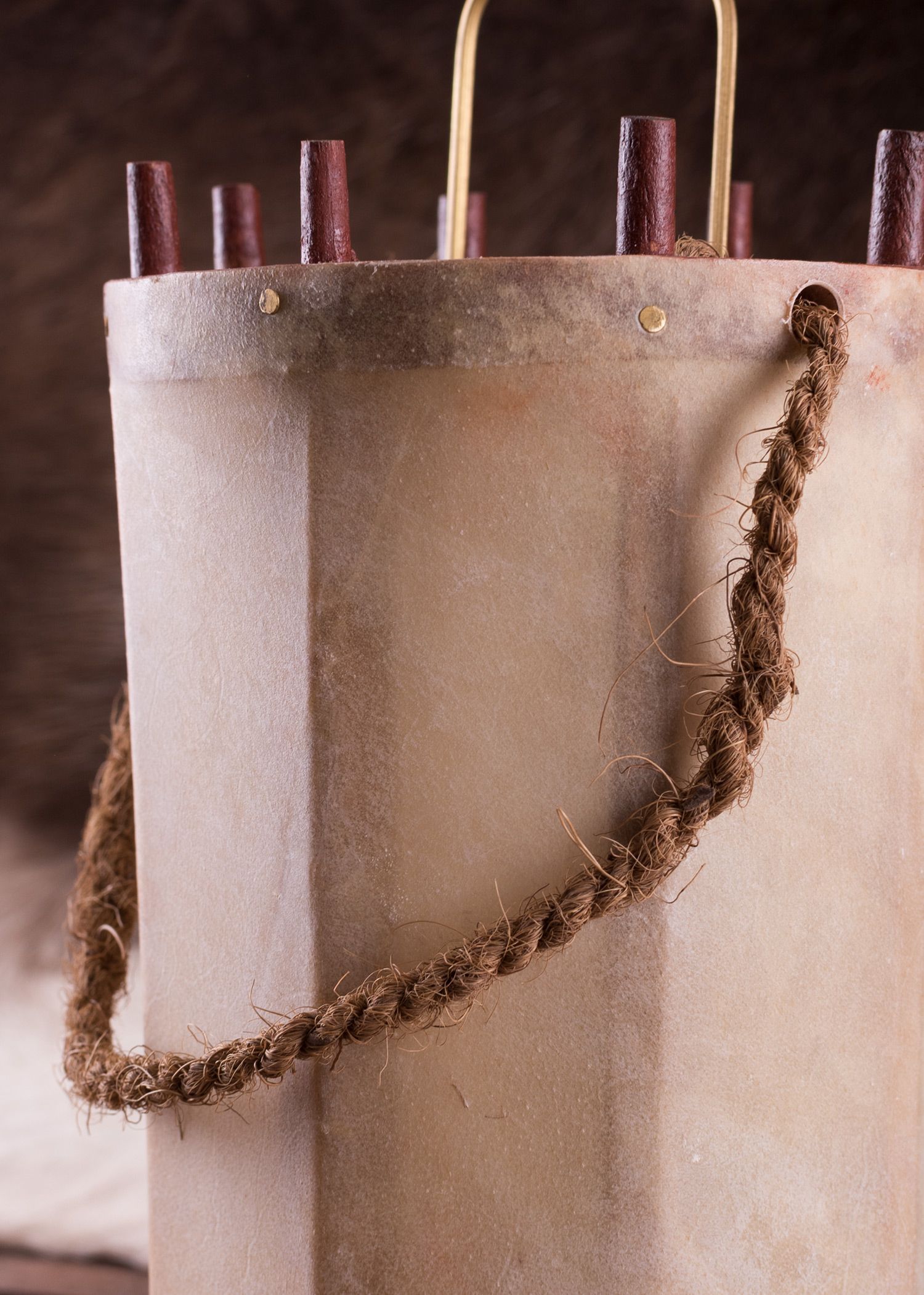 Mittelalterliche Laterne aus Holz und Rohhaut (Pergament)