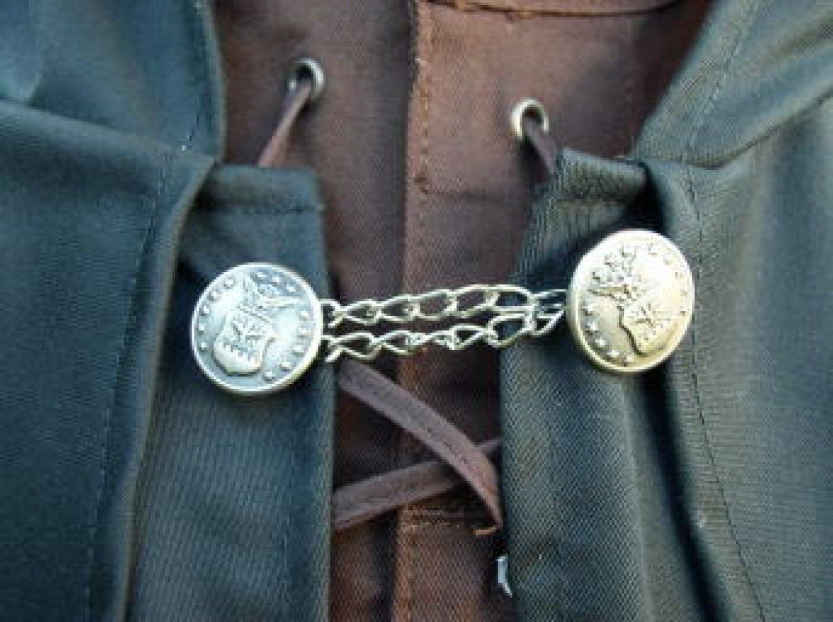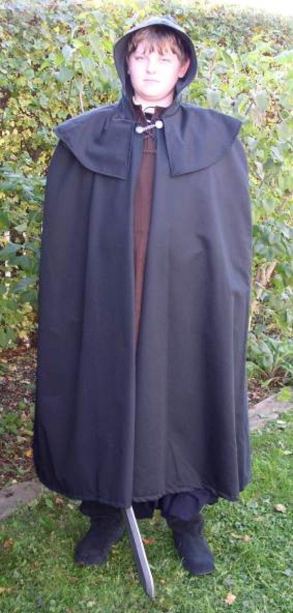 Der mittelalterliche Umhang ist besonders für die kühleren Tage im Frühjahr und Herbst geeignet. Er ist aus Baumwolle gearbeitet und hat einen Kragen und eine Kapuze. Versehen mit zwei silberfarbenen Knöpfen ist er mit einer Kette zu schließen. Er ist erhältlich in den Grüßen S - XXXL und hat eine Länge von ca. 120 cm.