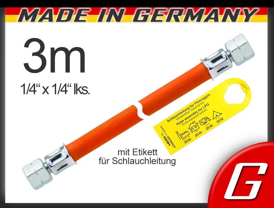 Propan Mitteldruck-Schlauchleitung 3 m (1 4 Zoll x 1 4 Zoll) Zum Anschluss von Flüssiggasflaschen bis 14 Kg ( 3 kg, 5 kg und 11 kg ) an Gasgeräte im Außenbereich wie z.B. Gaskocher Brennersysteme Wokbrenner Hockerkocher Gasheizer .... NEU ! NEU ! NEU ! NEU ! Die Schlauchleitungen werden zusätzlich m