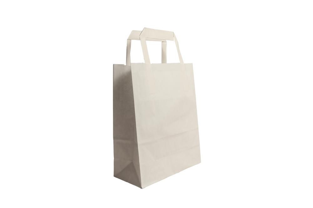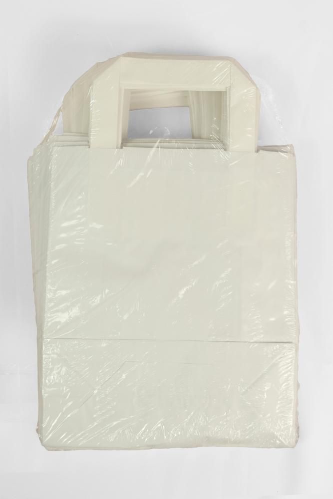 Mittlere (22 + 10x28 cm) weiße Papiertasche mit Flachhenkel, unbedruckt, 70g/m²,