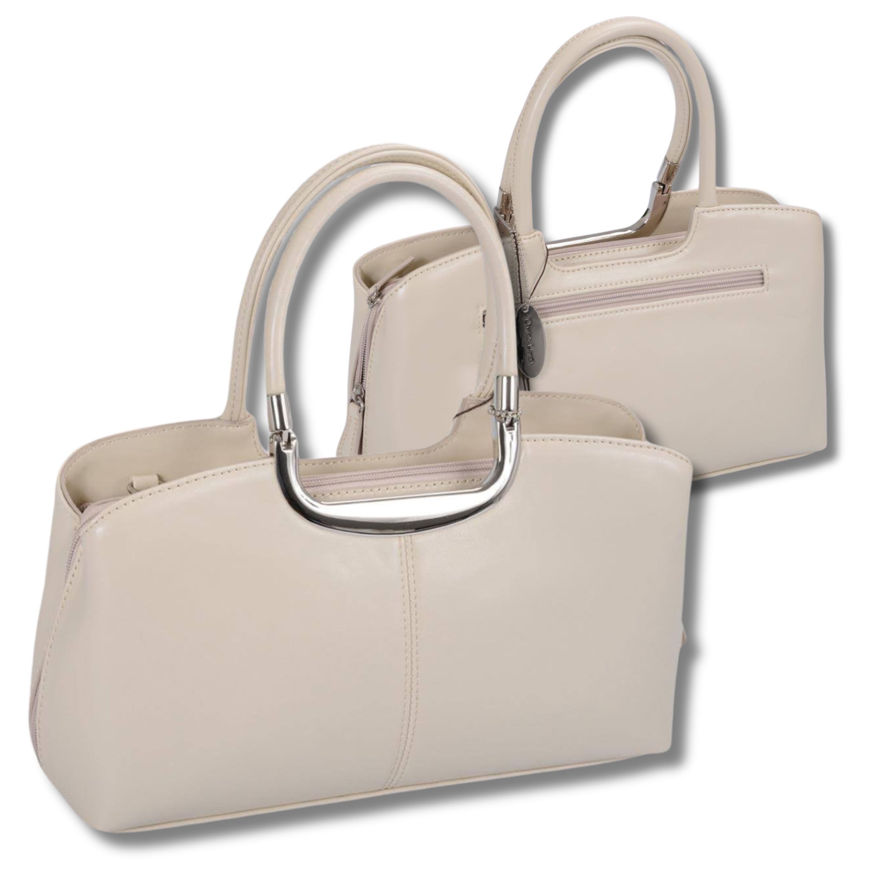 mittlere beige Daniele Donati Handtasche, fest Form, Schultergurt abnehmbar