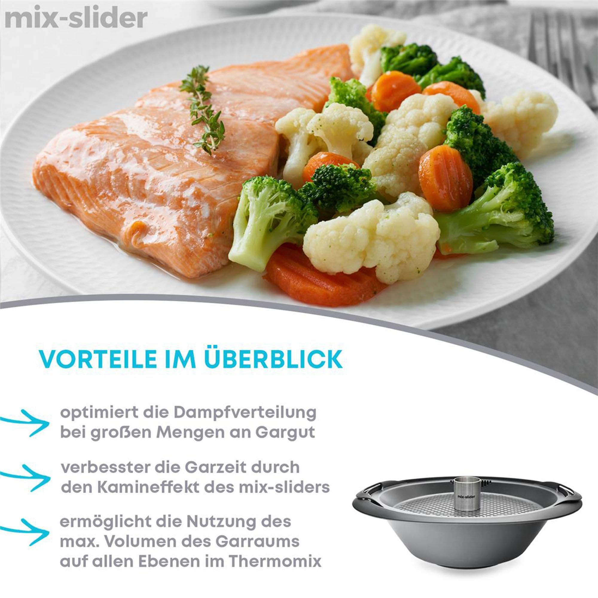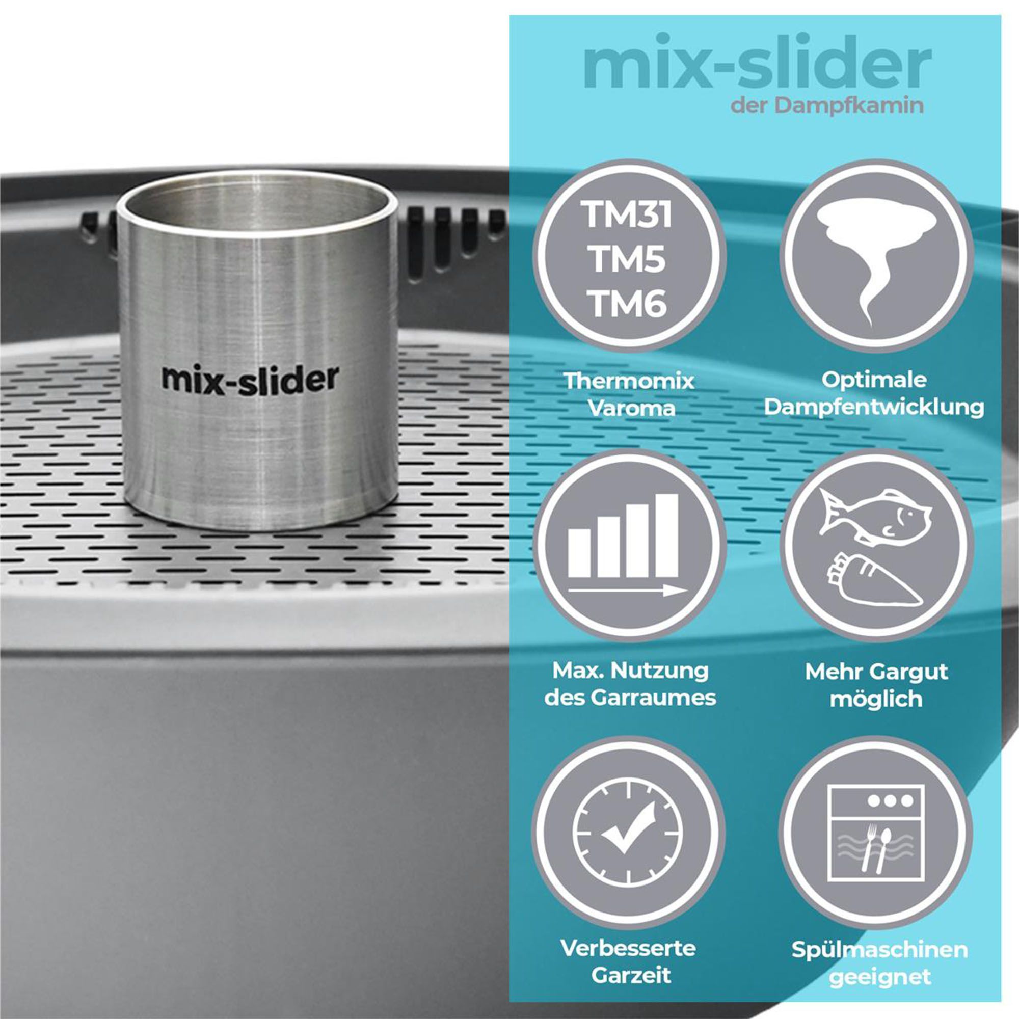mix-slider Dampfkamin für Thermomix TM31, TM5, TM6, MCC Garkamin für optimale
