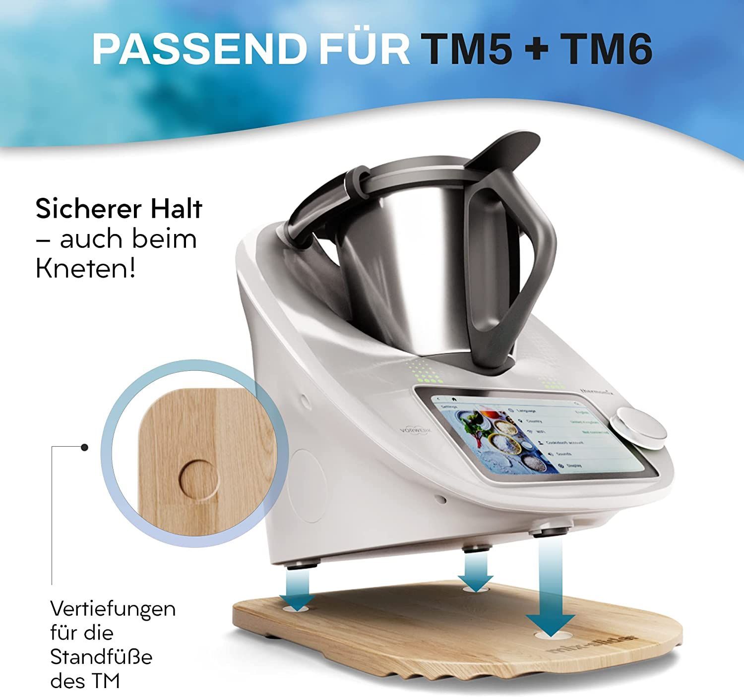 MIX-SLIDER – Gleitbrett für Thermomix TM5 & TM6, Rollbrett aus Massivholz Eiche