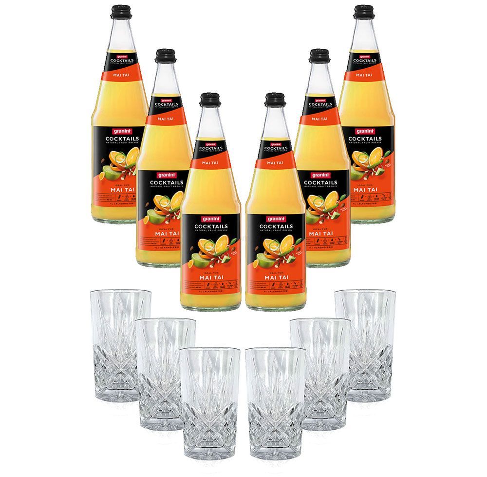 Mixcompany Set - 6x Longdrink Glas Kristall Optik + 6er Set Granini Mai Tai Alk