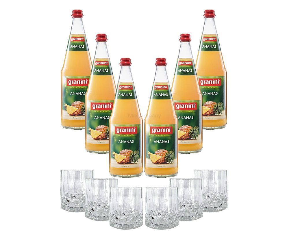Mixcompany Set - 6x Tumbler Glas Kristall Optik + 6er Set Granini Ananas 1L Saf