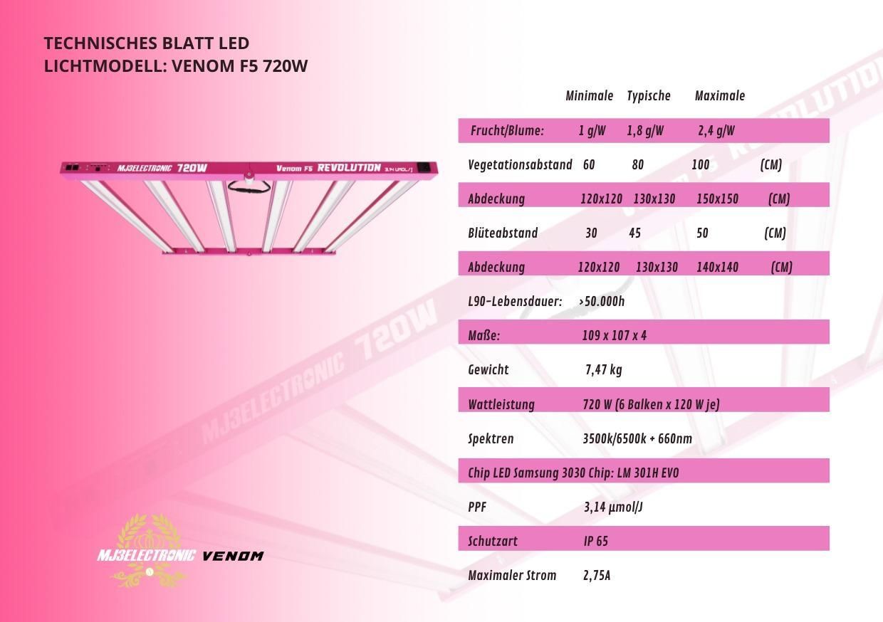 MJ3 VENOM F5 LED 720W Samsung 301H EVO Pflanzenlampe Pflanzenlicht