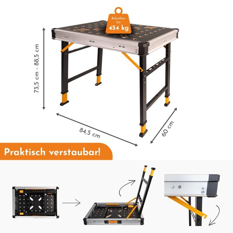 Mobile Werkbank, Werktisch mit über 450 kg Tragkraft, Klappwerkbank mit viel Zubehör