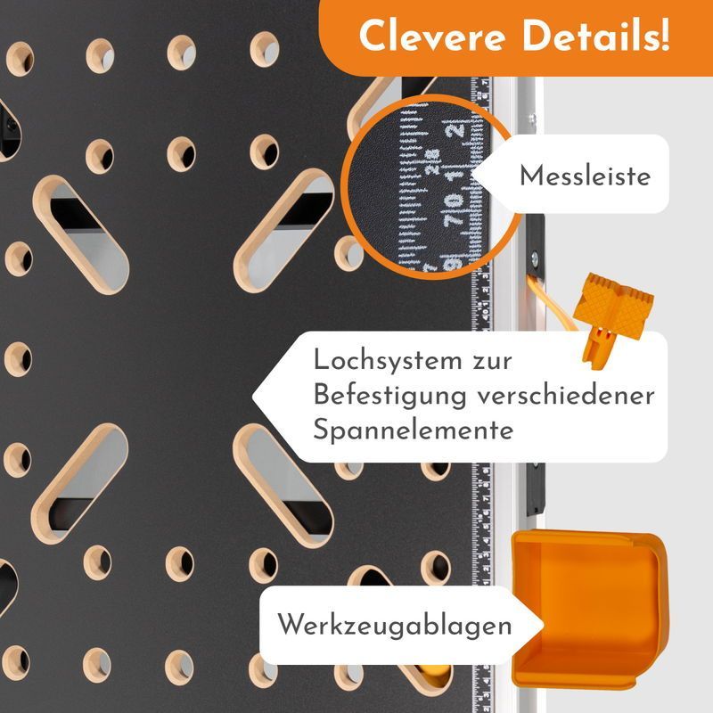 Die Werkbank darf nur im komplett aufgeklappten Zustand verwendet werden.