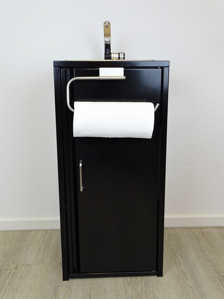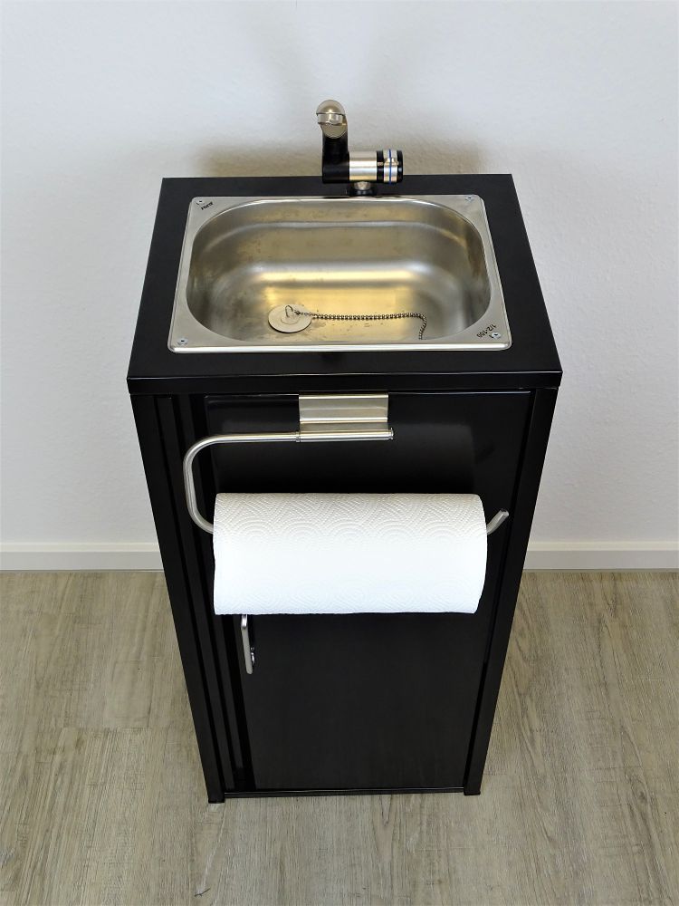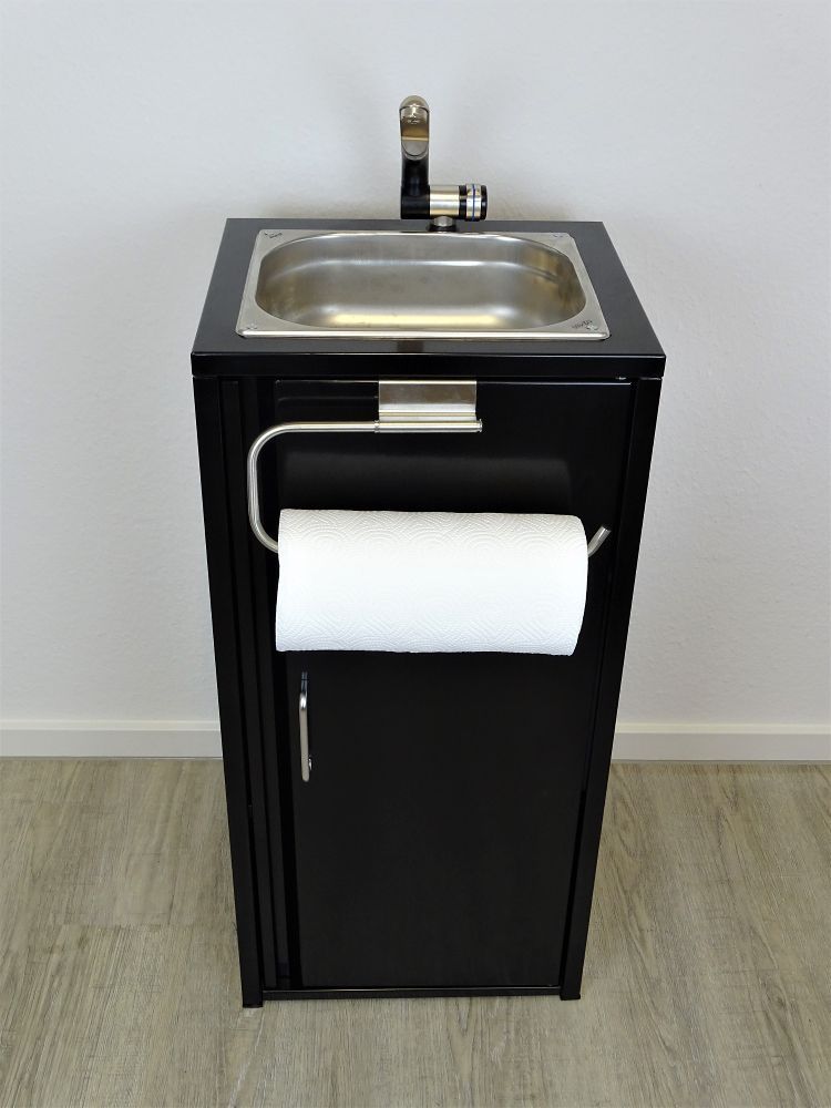 Mobiles Waschbecken Spülbecken Handwaschbecken Schwarz mit Küchenrollenhalter