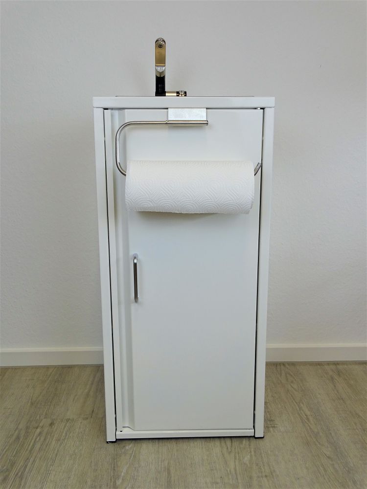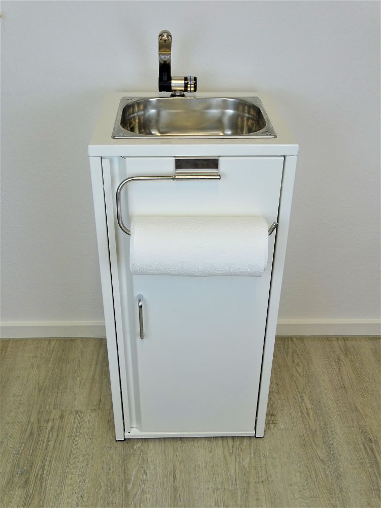 Mobiles Waschbecken Spülbecken Handwaschbecken Weiss mit Küchenrollenhalter
