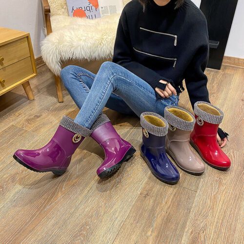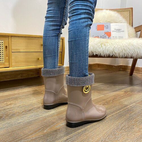 Mode Damen warm Outdoor Regenstiefel Mittelrohr Kuche wasserdicht Schuhe N1