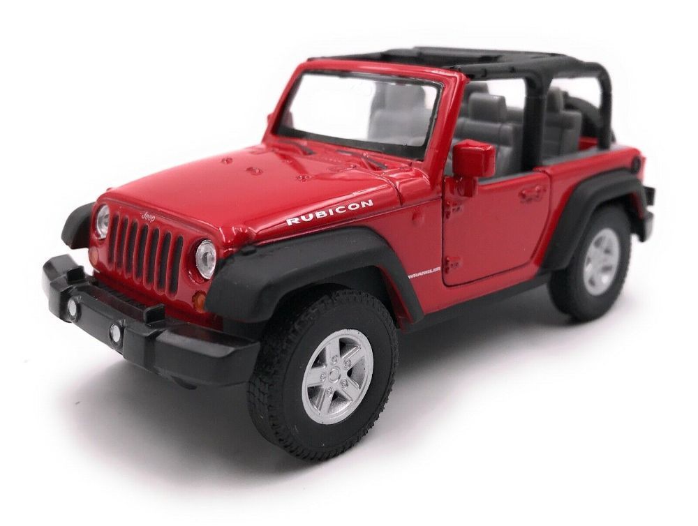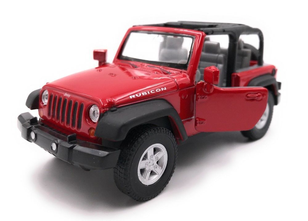 Modellauto Jeep Wrangler Rubicon Geländewagen Rot Cabrio Auto Maßstab 1:34-39