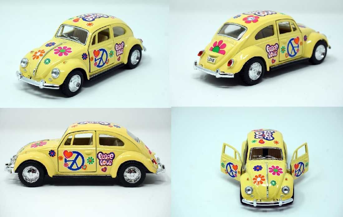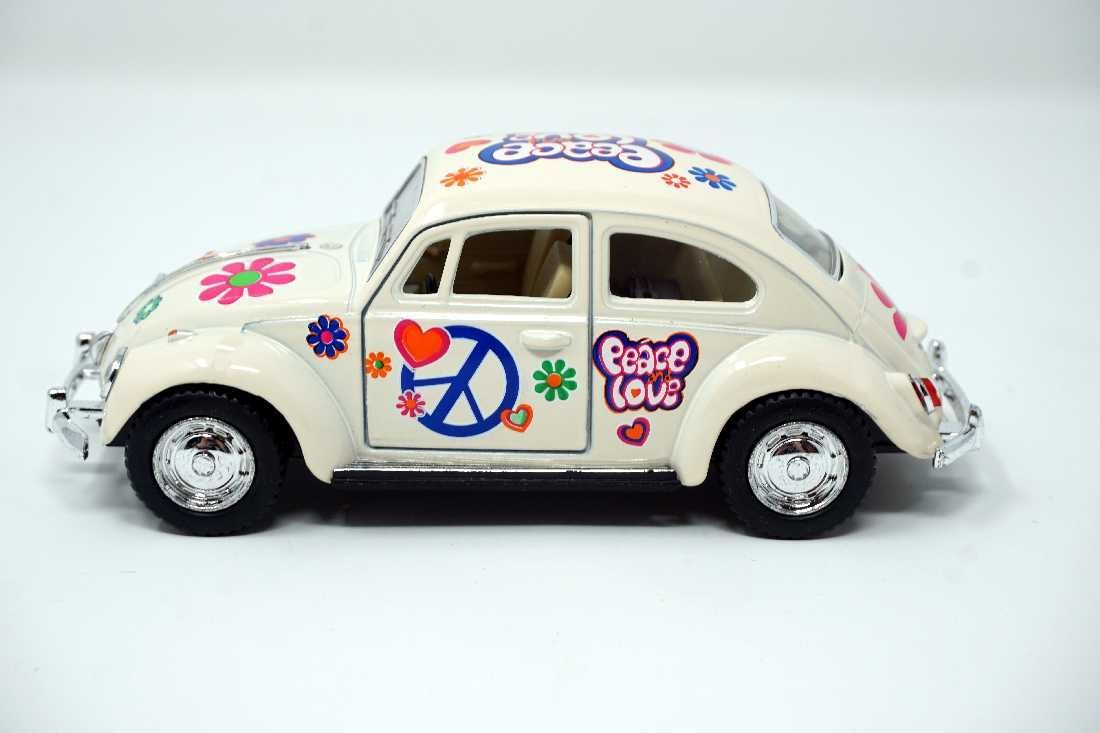 Modellauto Käfer 1967 Peace + Love mit Rückziehmotor 12 cm