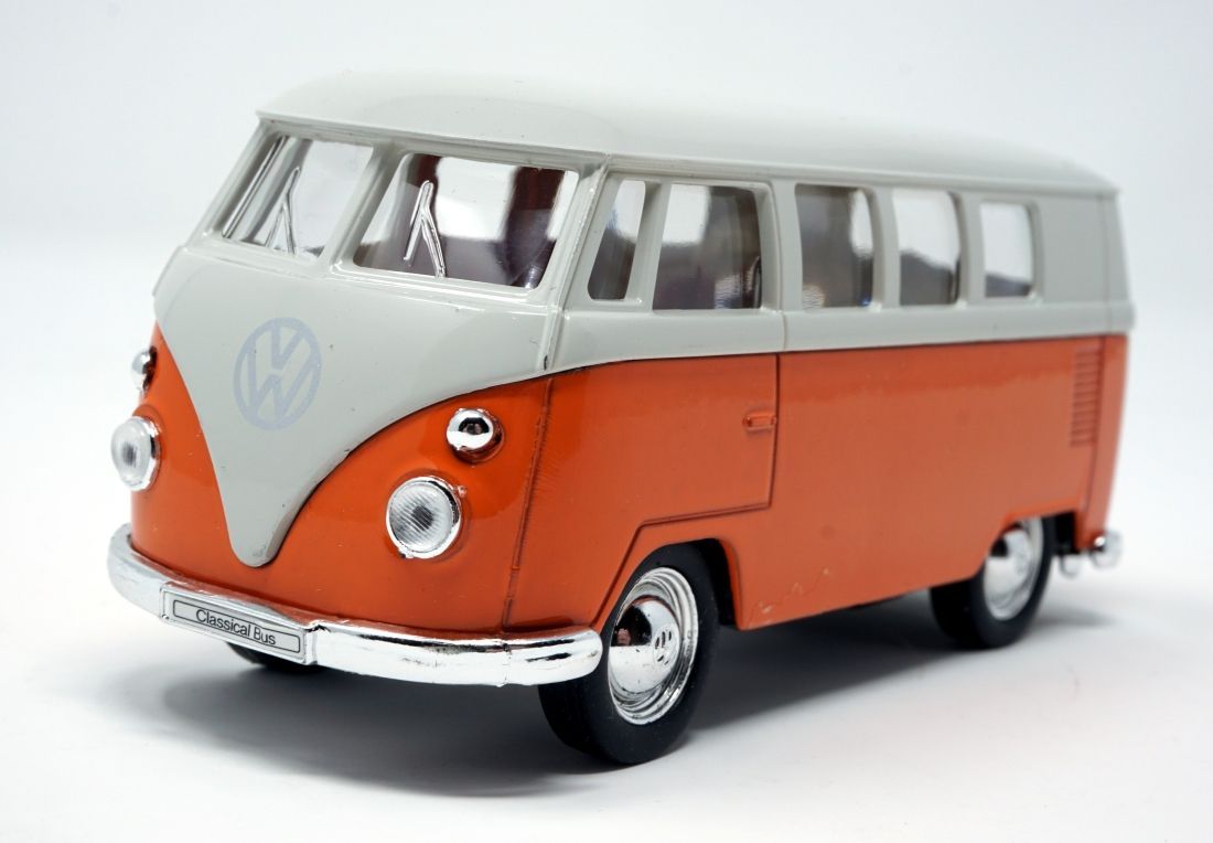 Modellauto T1 Bus 1963 mit Rückziehmotor orange / beige