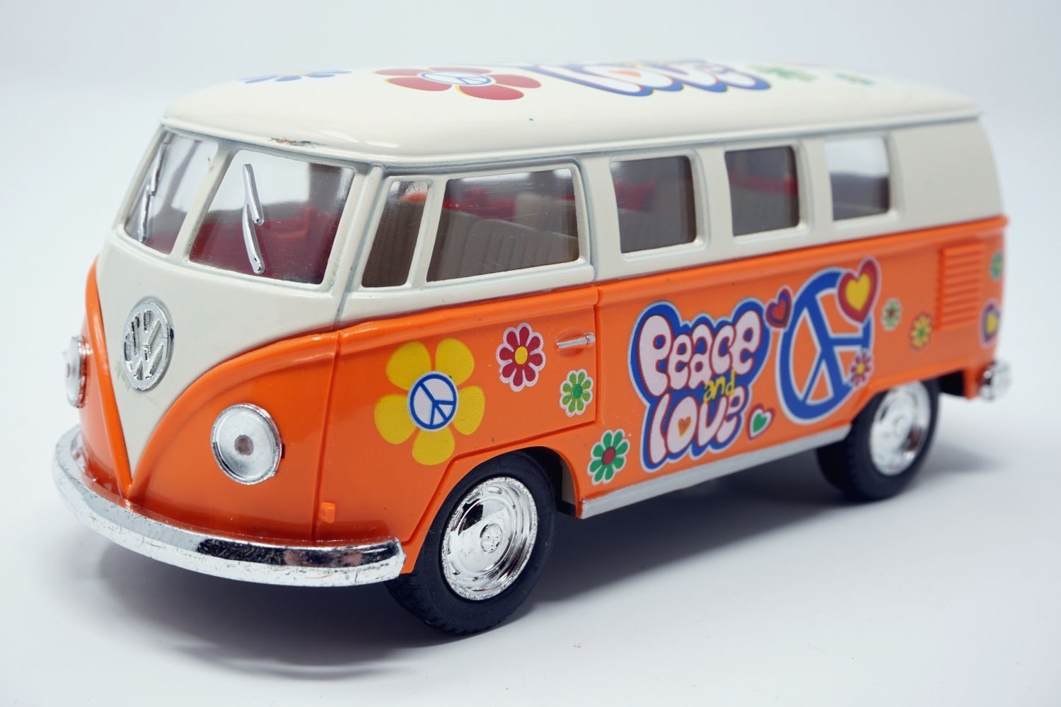 Modellauto T1 Bus Peace and Love 1962 orange / beige Rückziehmotor