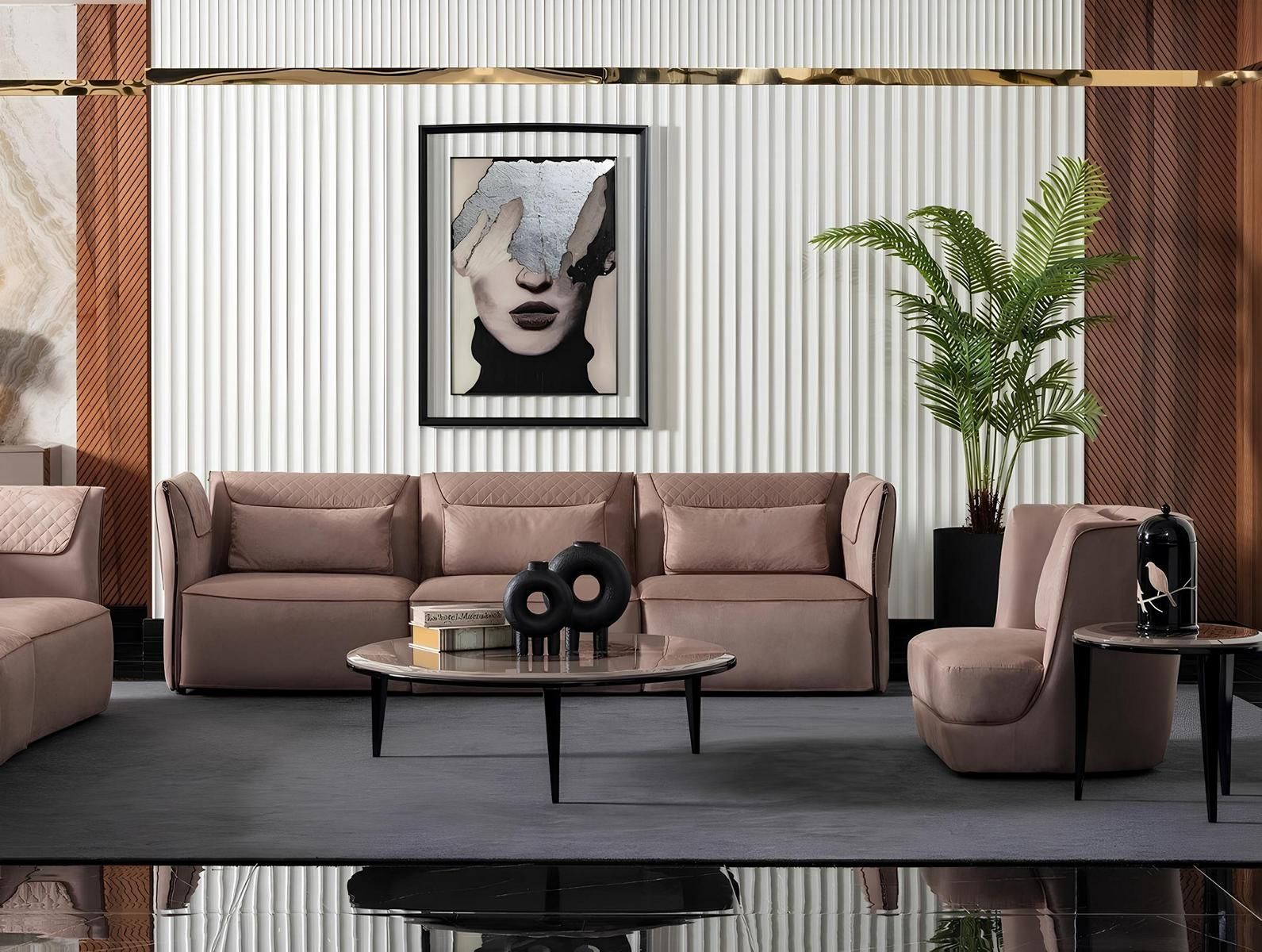 Modern beige Textilsofa und Sessel im Wohnzimmer Set