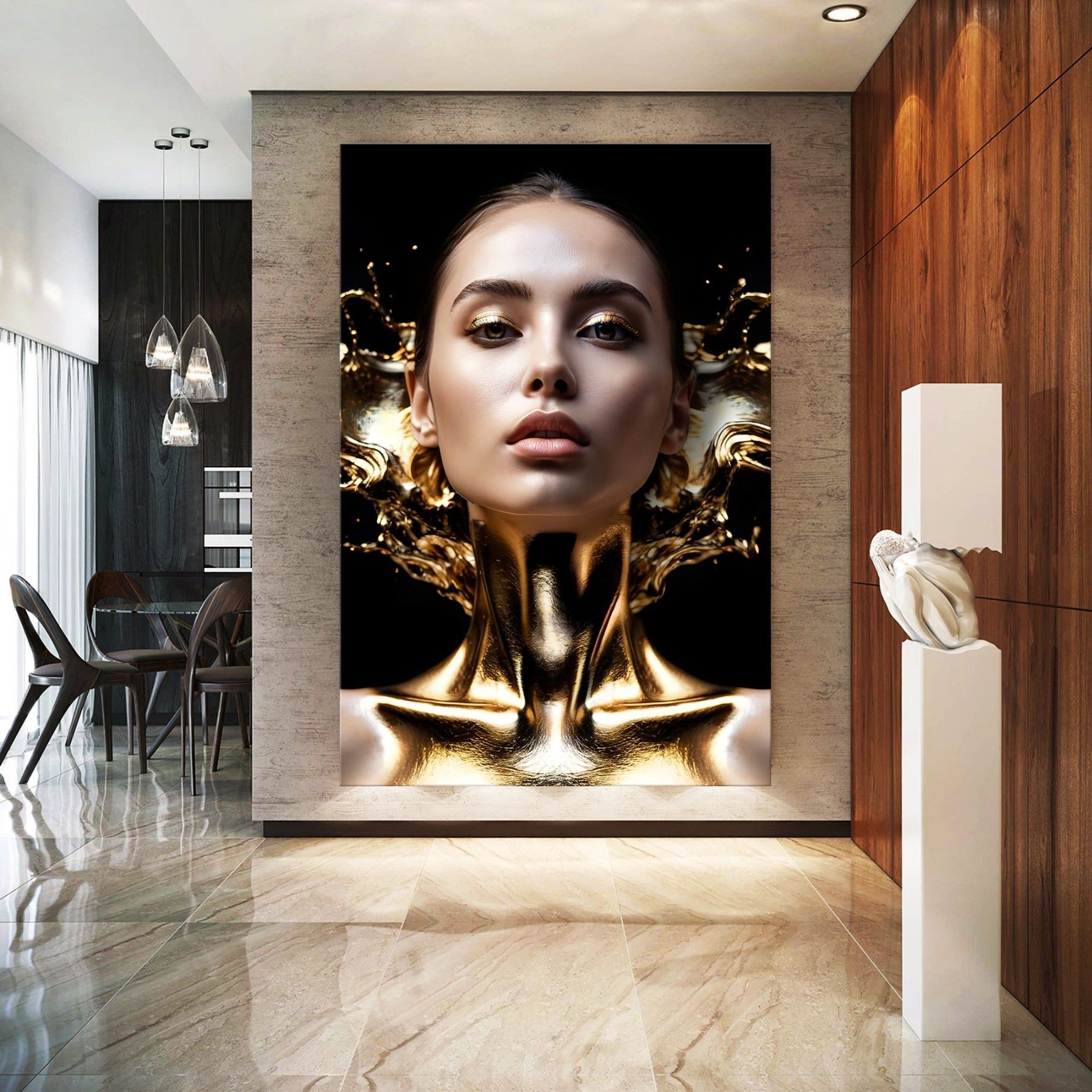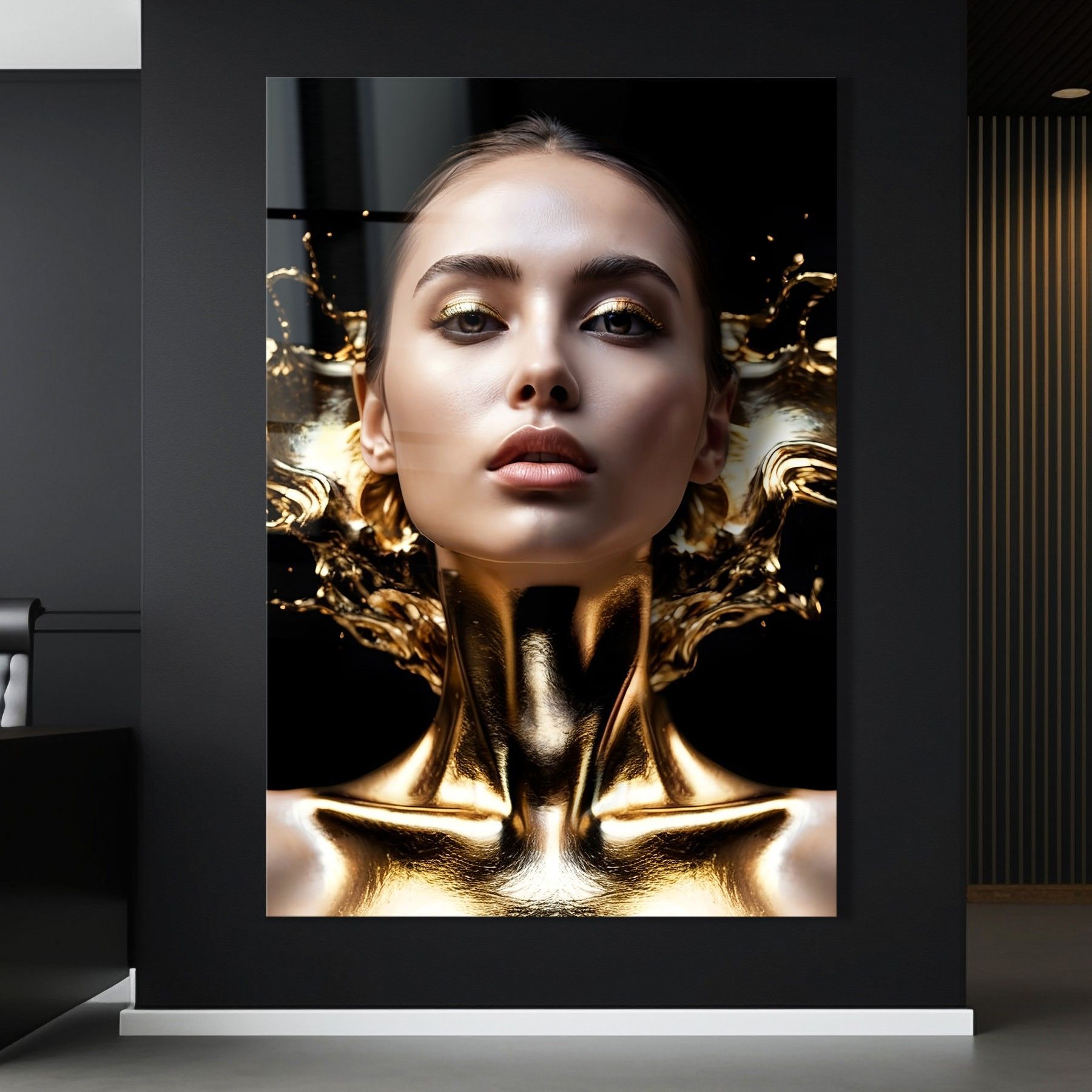 Modern Wandbild Golden Frau Luxus Poster, Leinwand , Acrylglas , Deko Kunst
