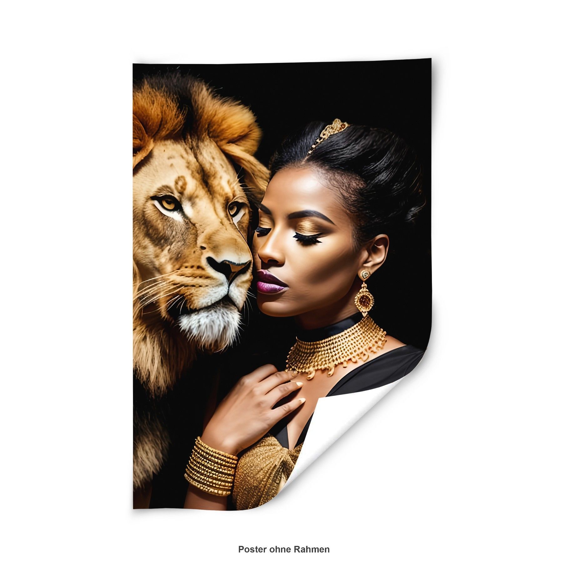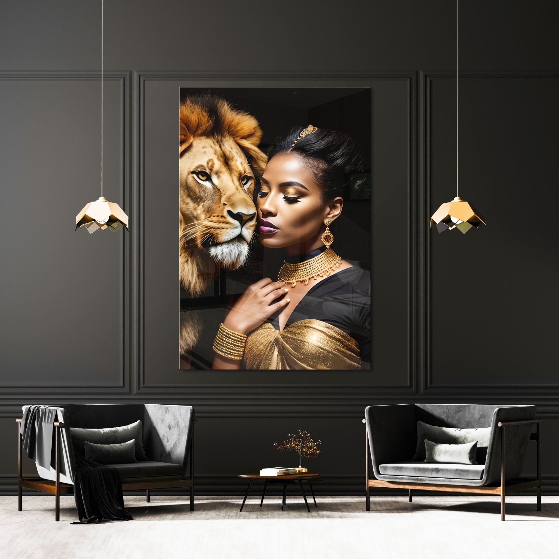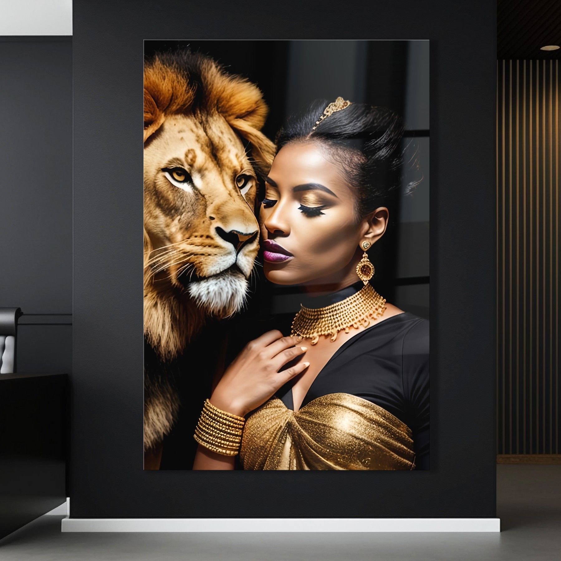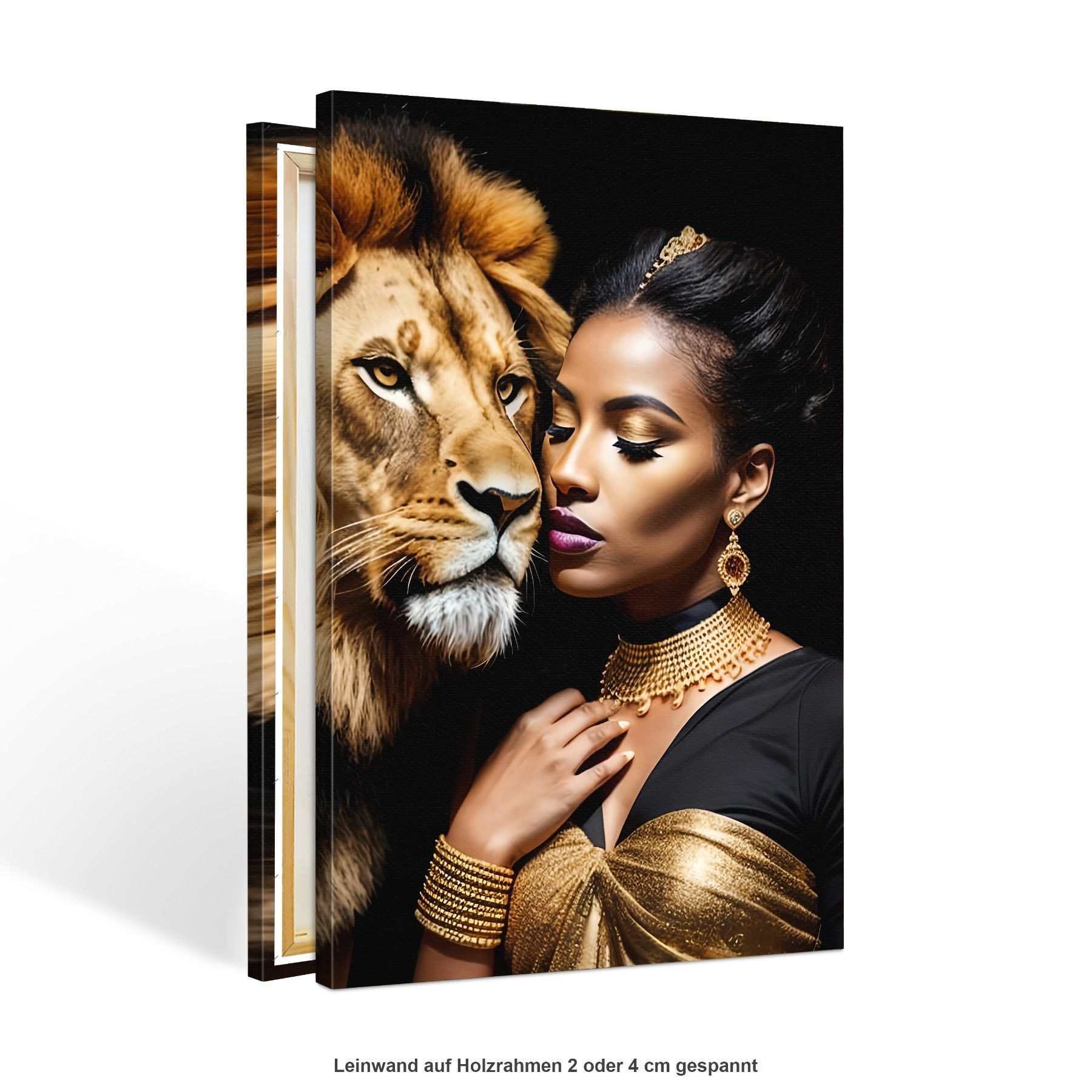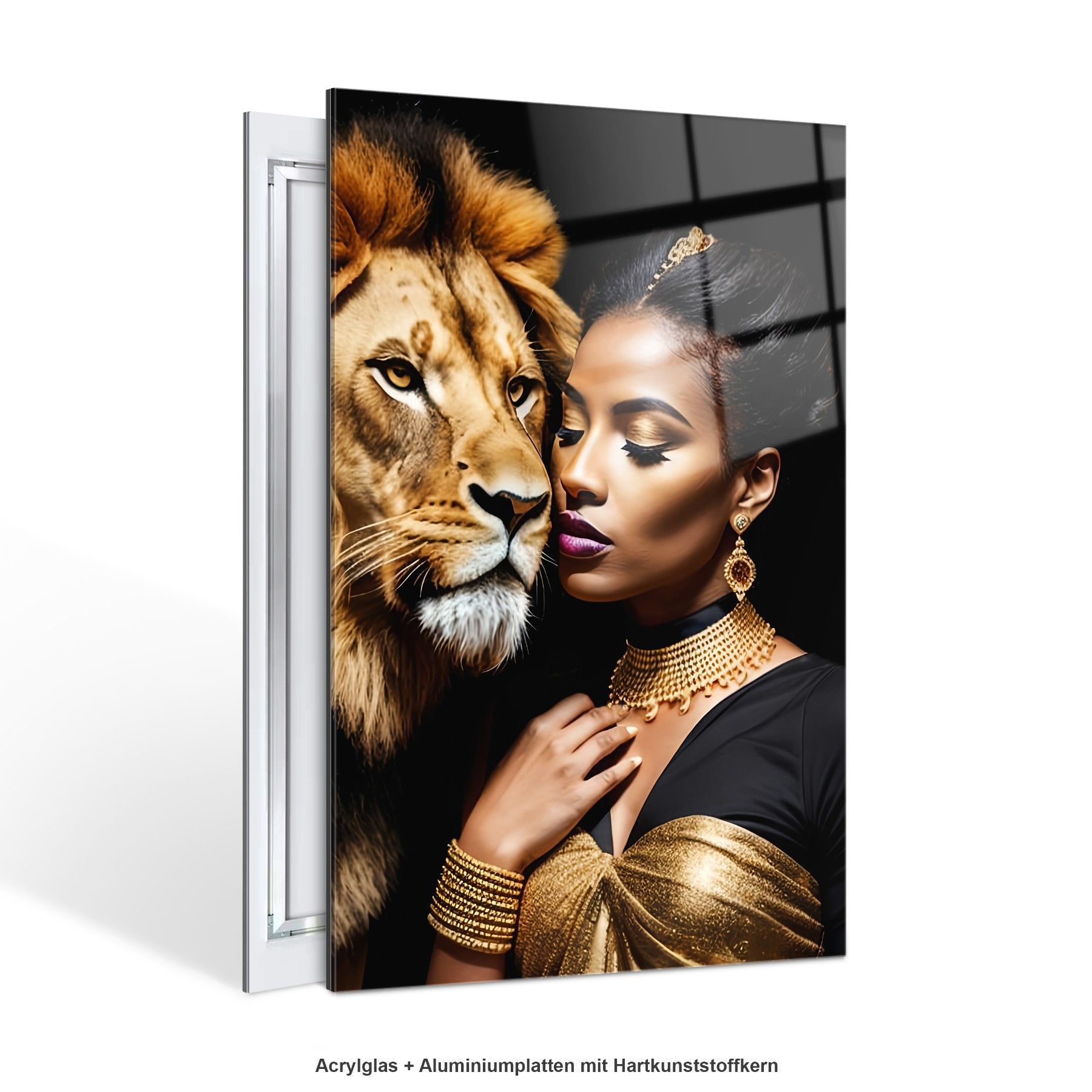 Modern Wandbild Tier Löwen und Frau , Mode Acrylglas + Aluminium , Leinwand , Poster