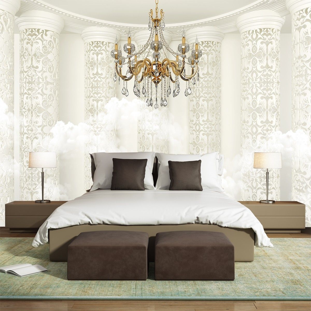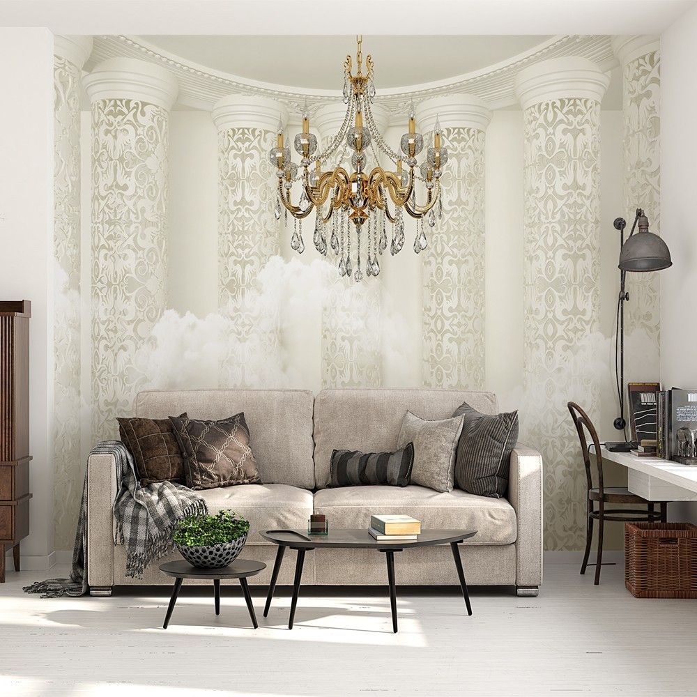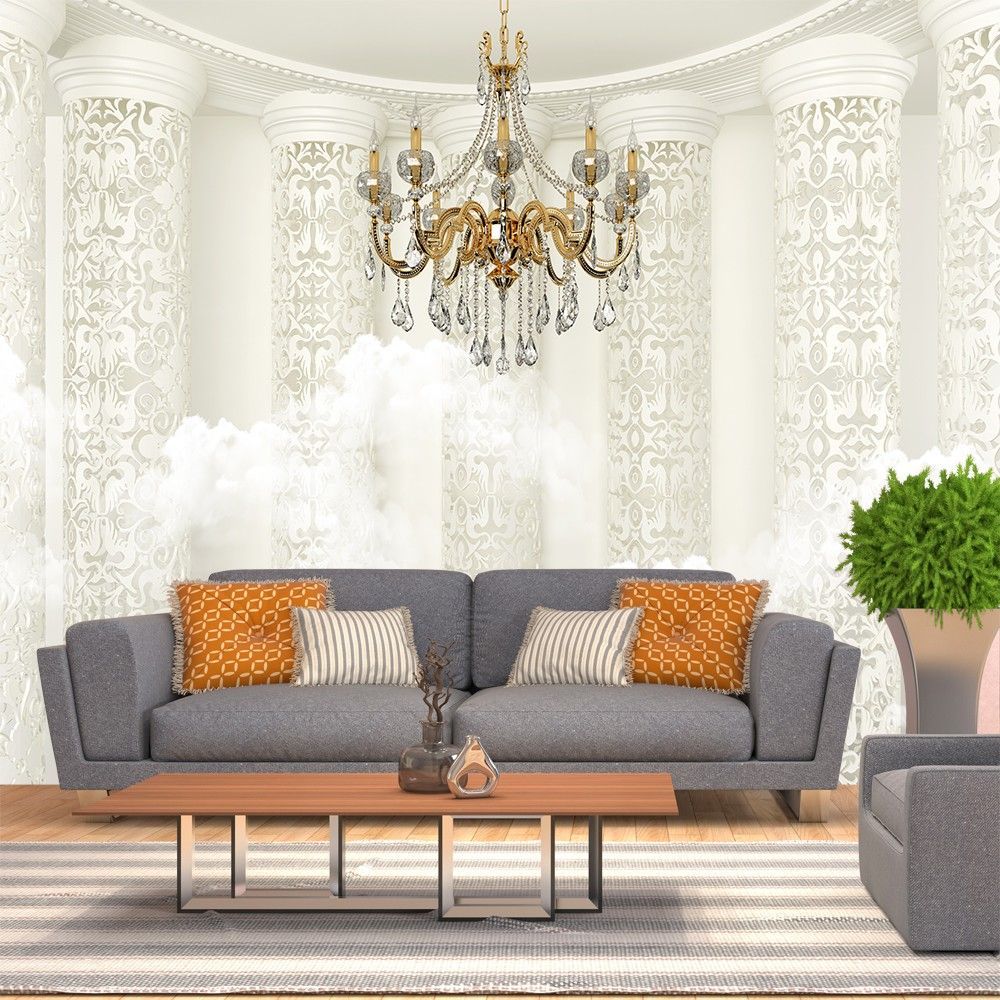 Moderne 3D Wandtapete Römische Säulen Kristallleuchter Hintergrund 8373