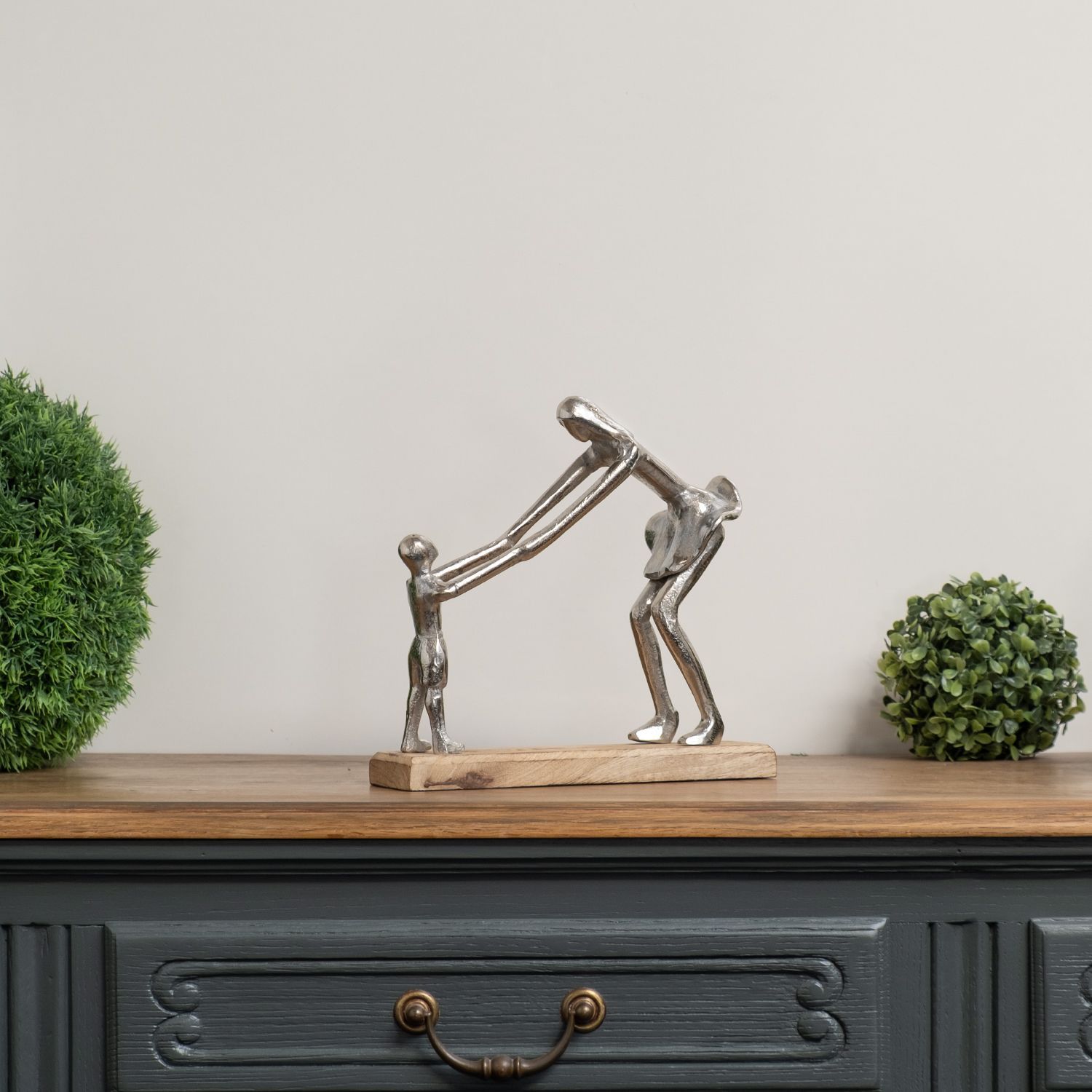 Moderne Aluminium-Skulptur Mutter und Kind - 26 x 9 x 25 cm - 0,9 kg - Figur auf