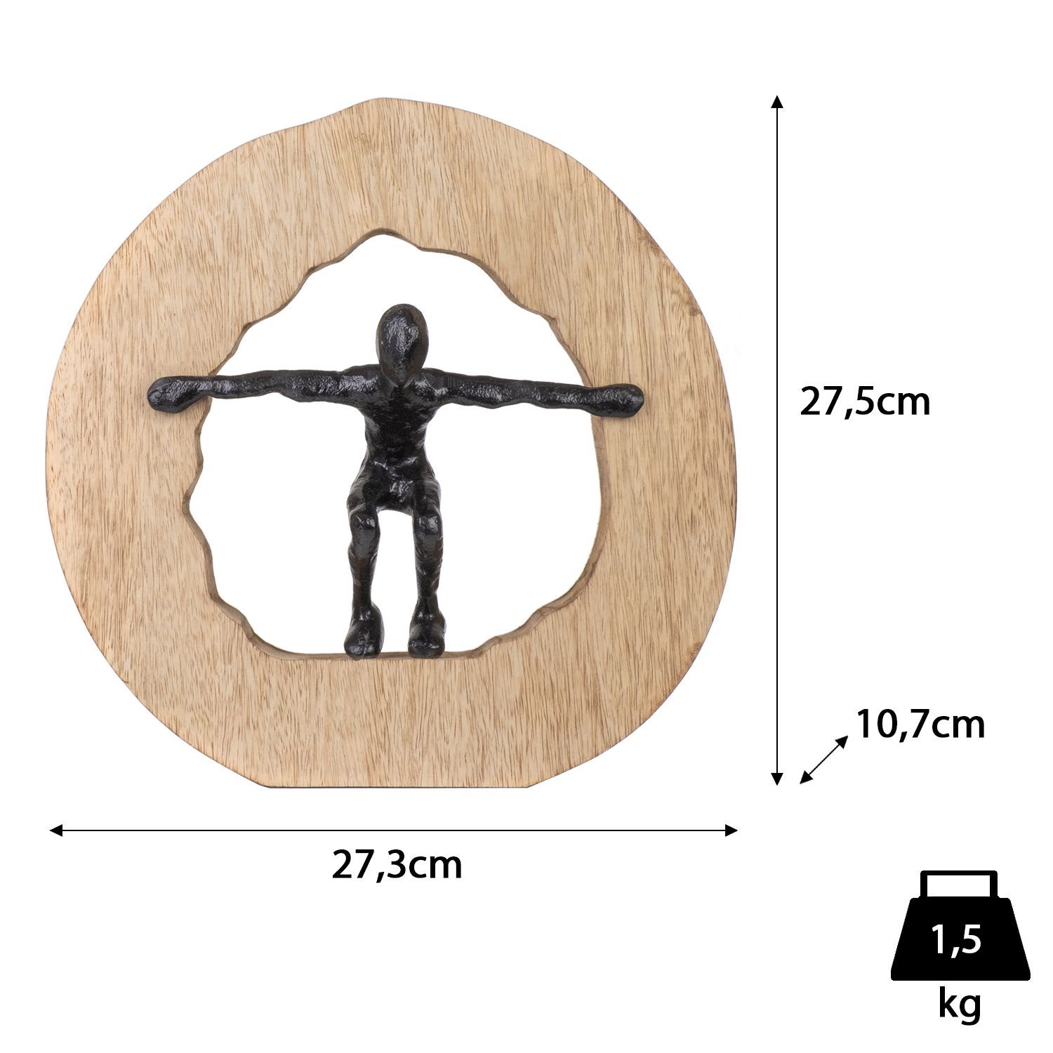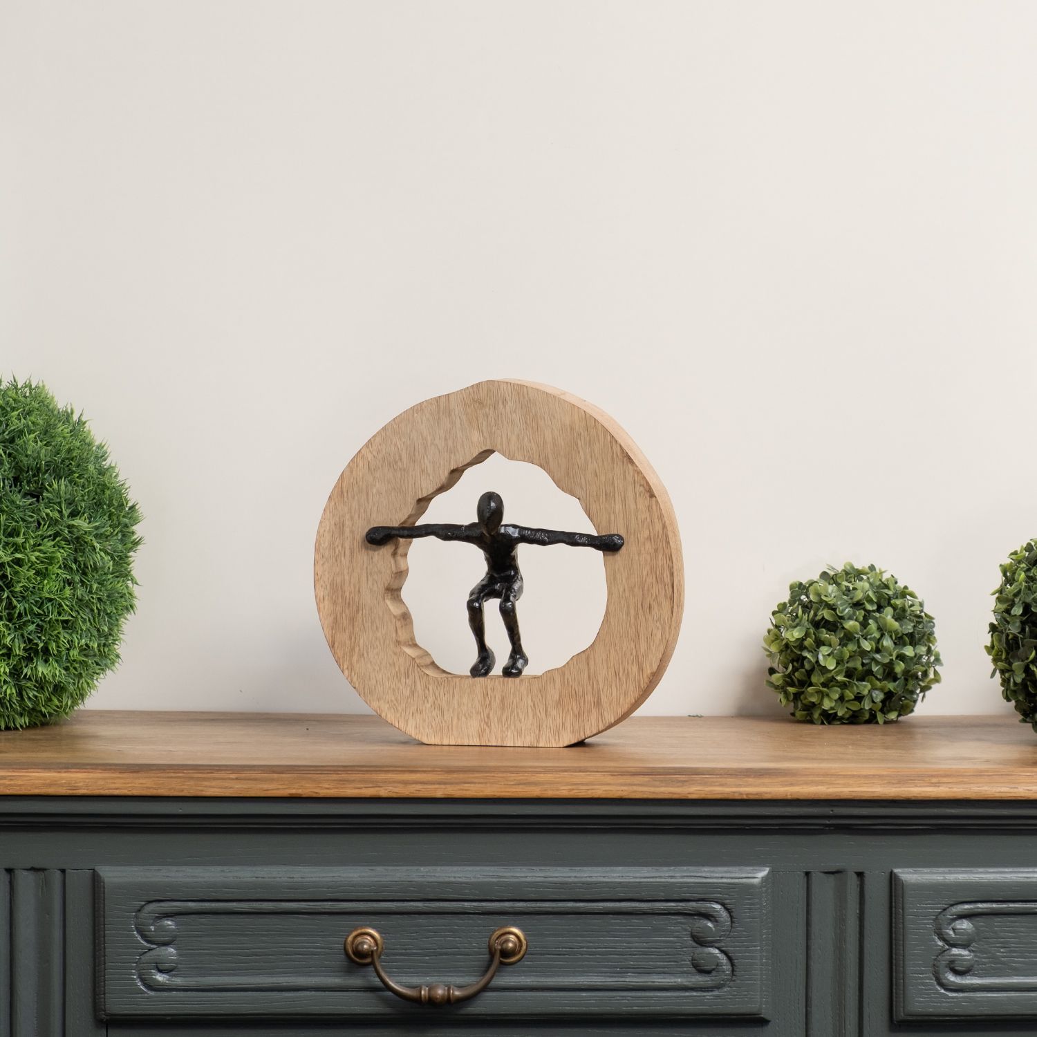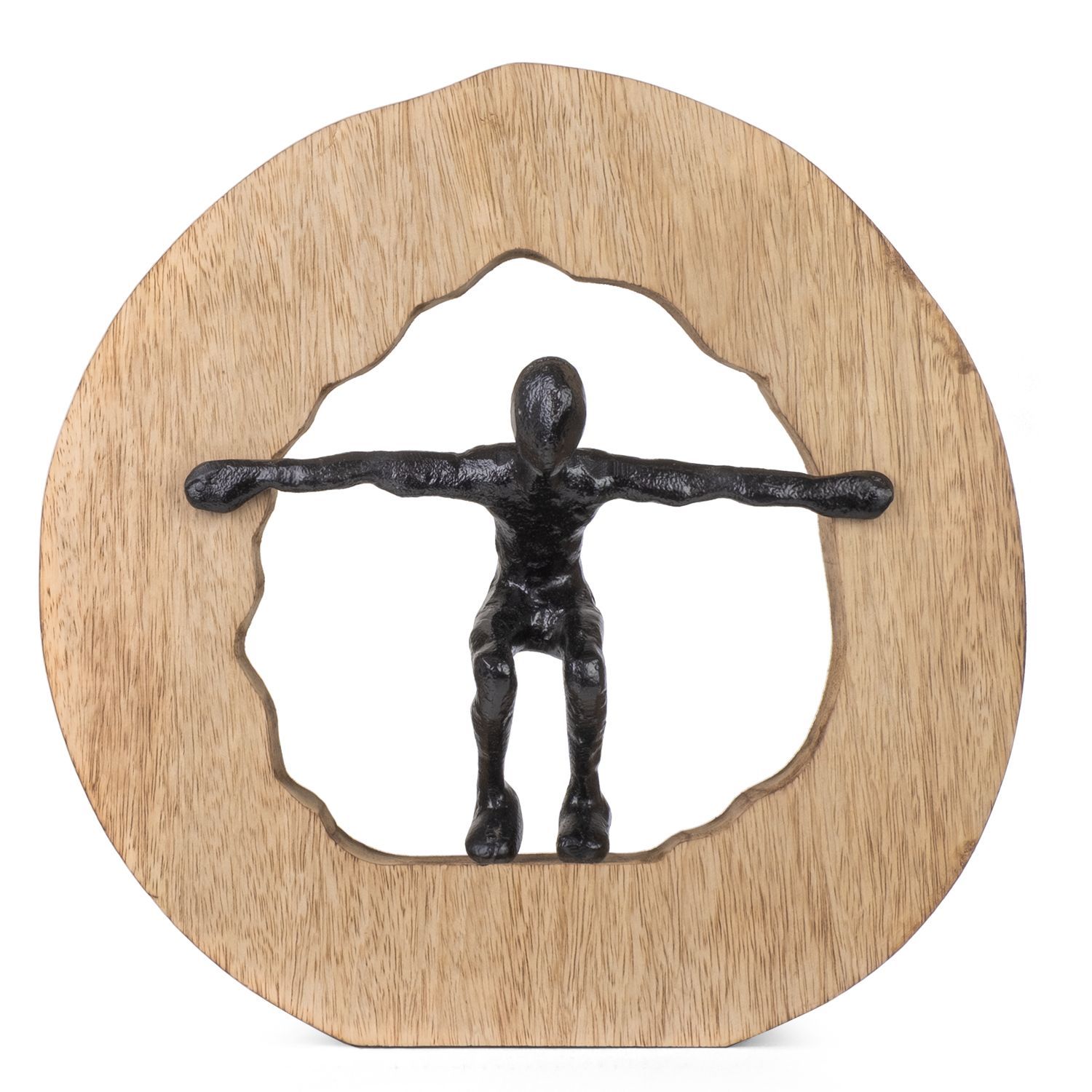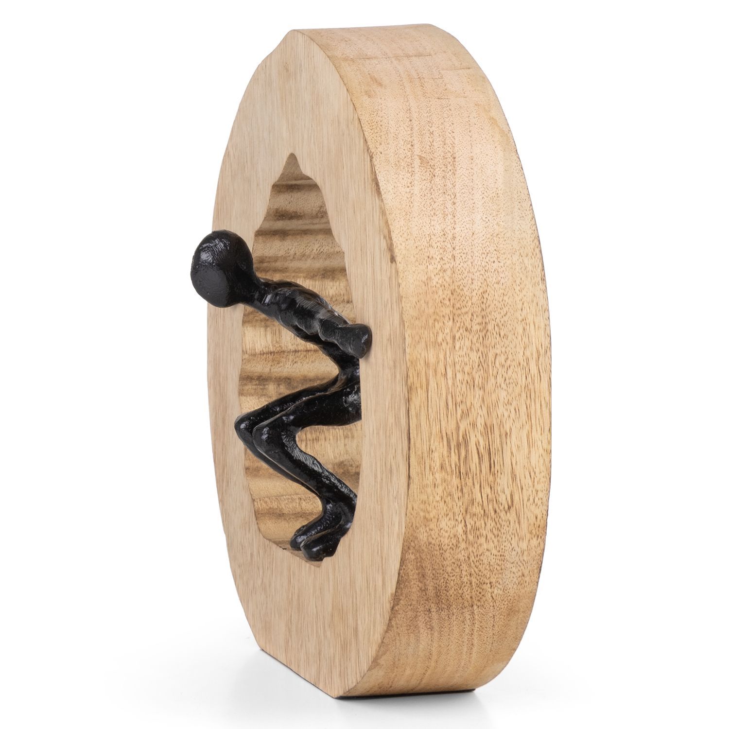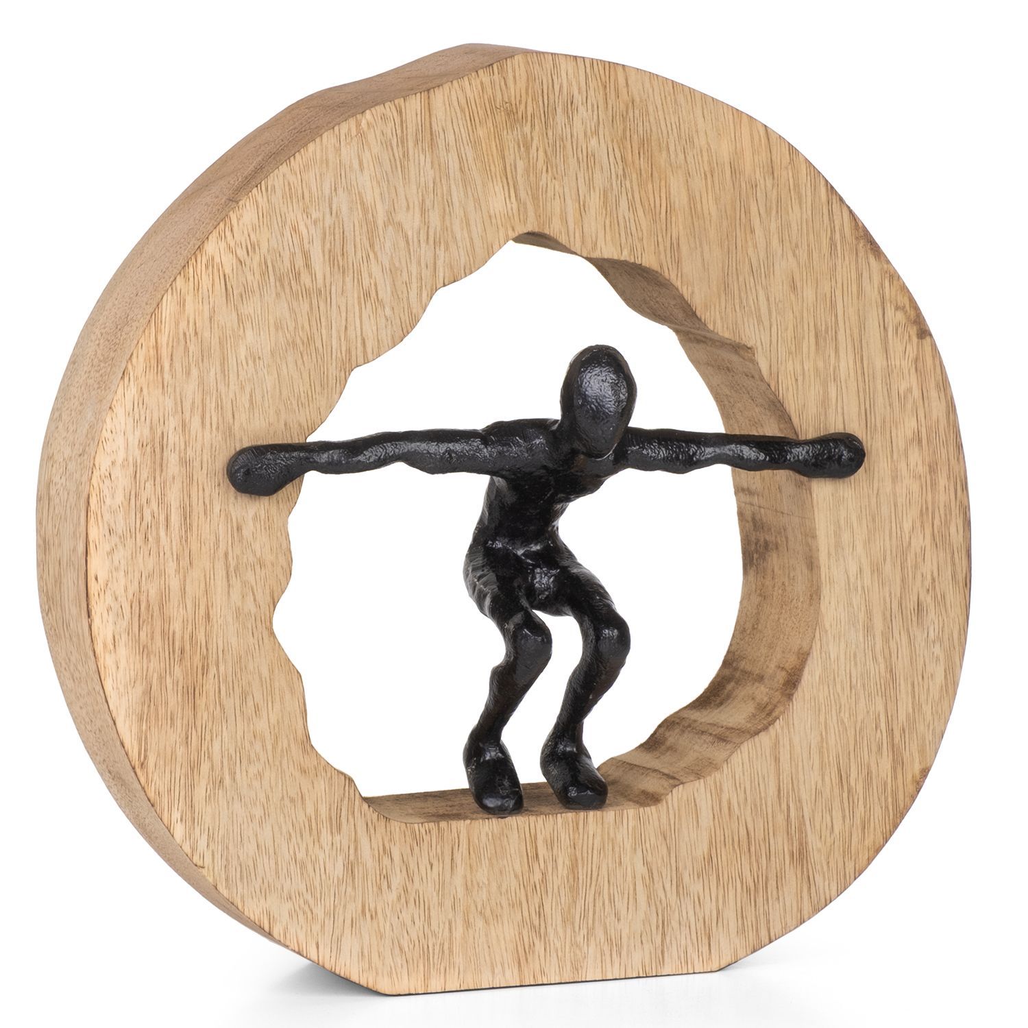 Moderne Aluminiumfigur im Holzrahmen Kreis Bewegung 27,3 x 10,7 x 27,5 cm - Skulptur