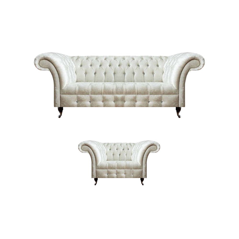Moderne Chesterfield Weiße Stoffcouch Exklusiver Wohnzimmer Sessel 2tlg