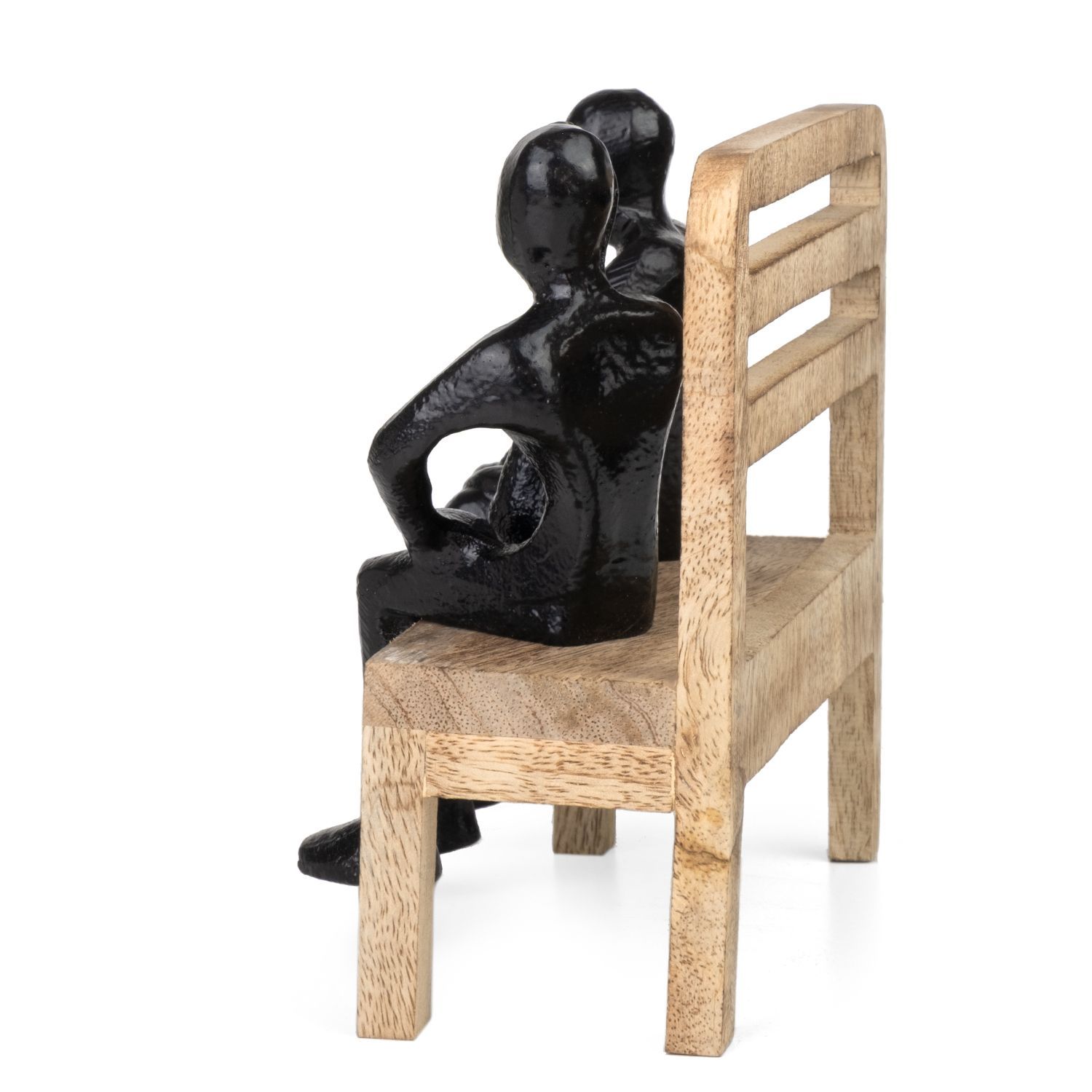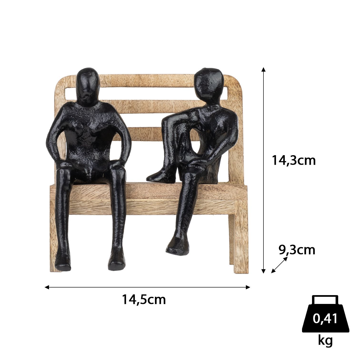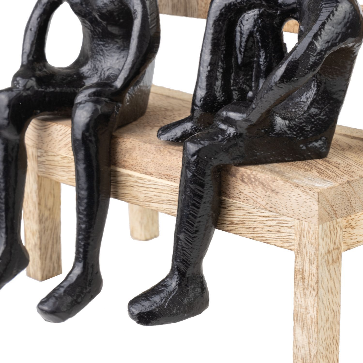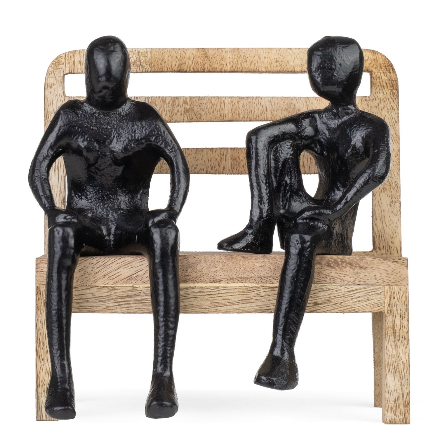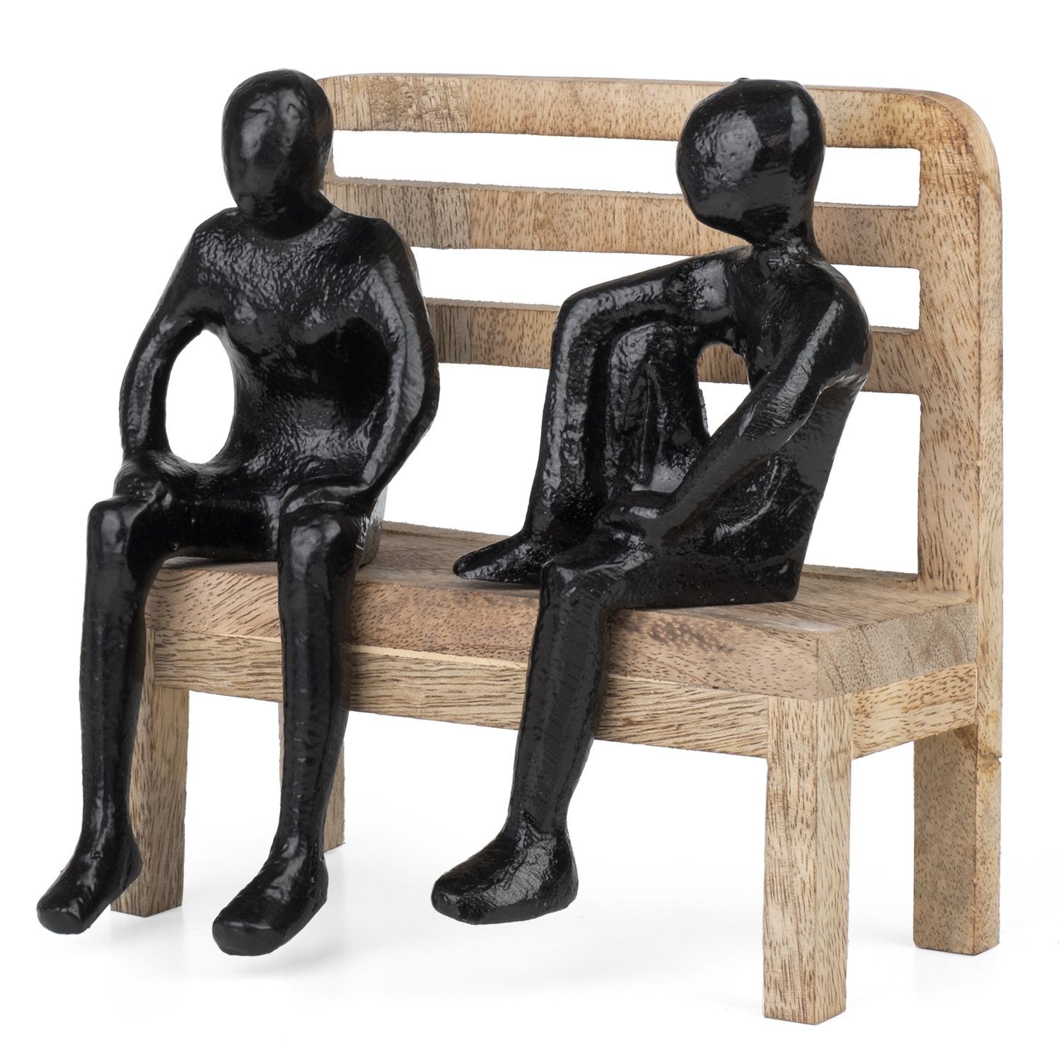 Moderne Dekofigur aus Aluminium auf Mangoholzbank - 2 Personen im Gespräch - stilvoll