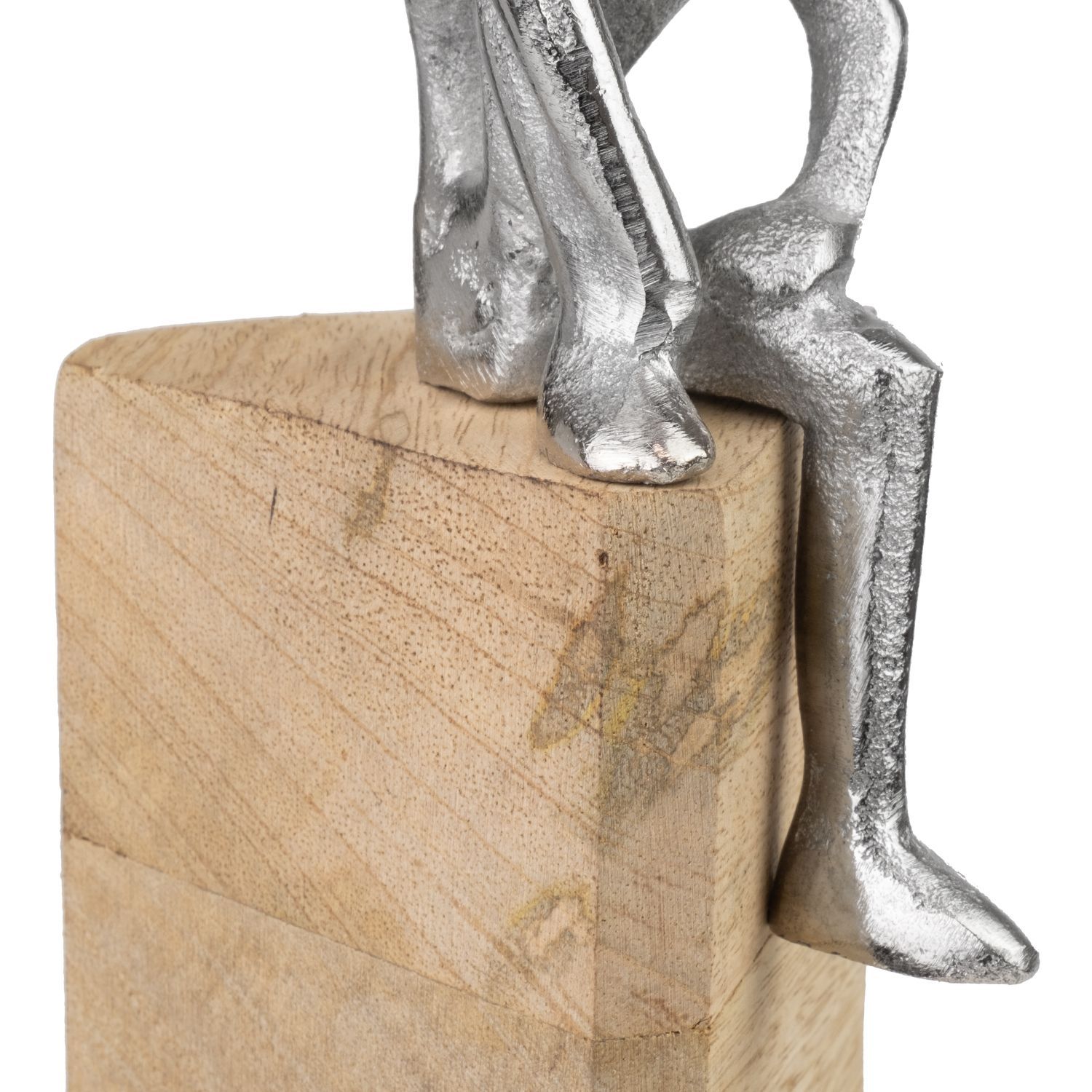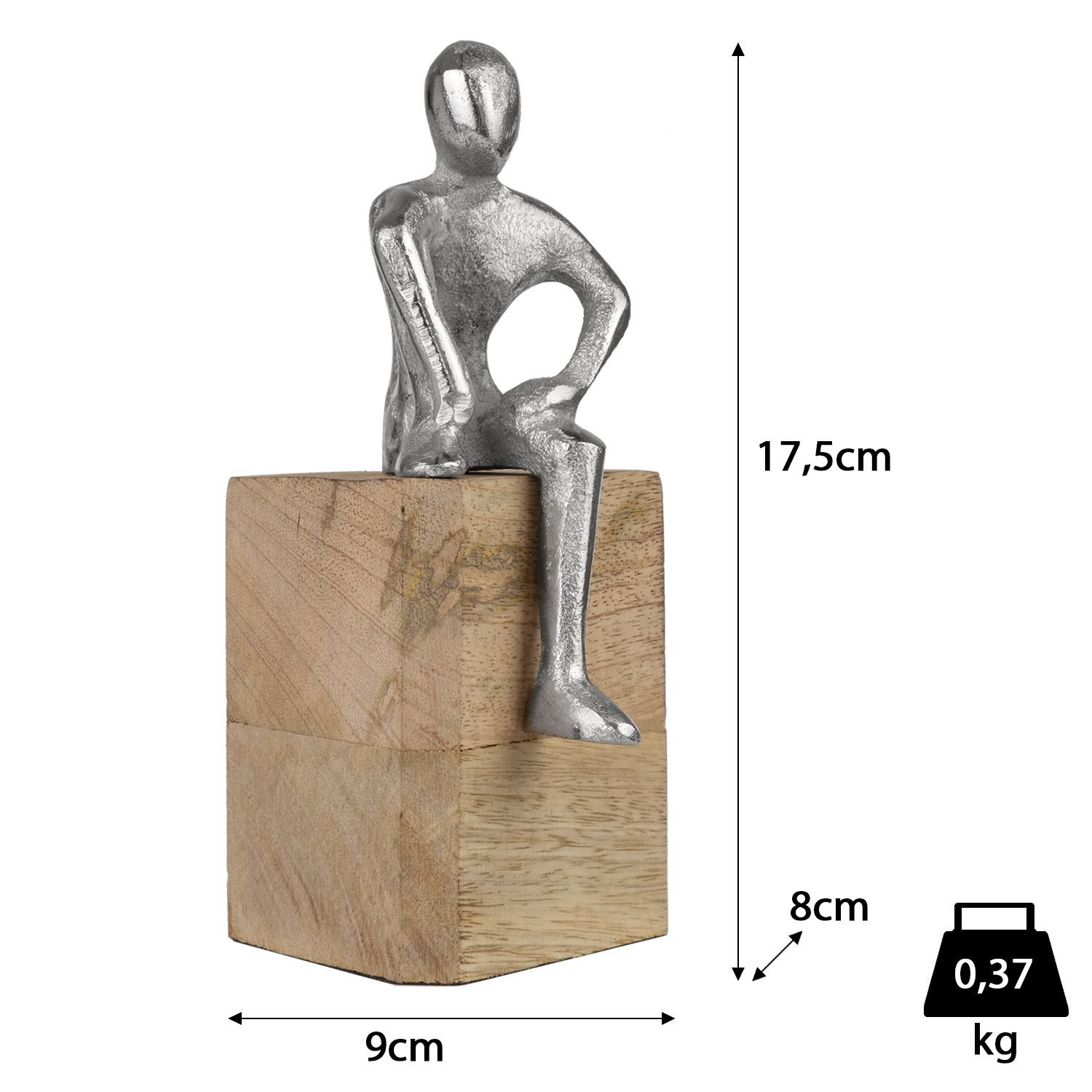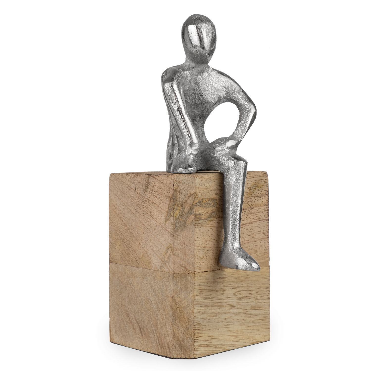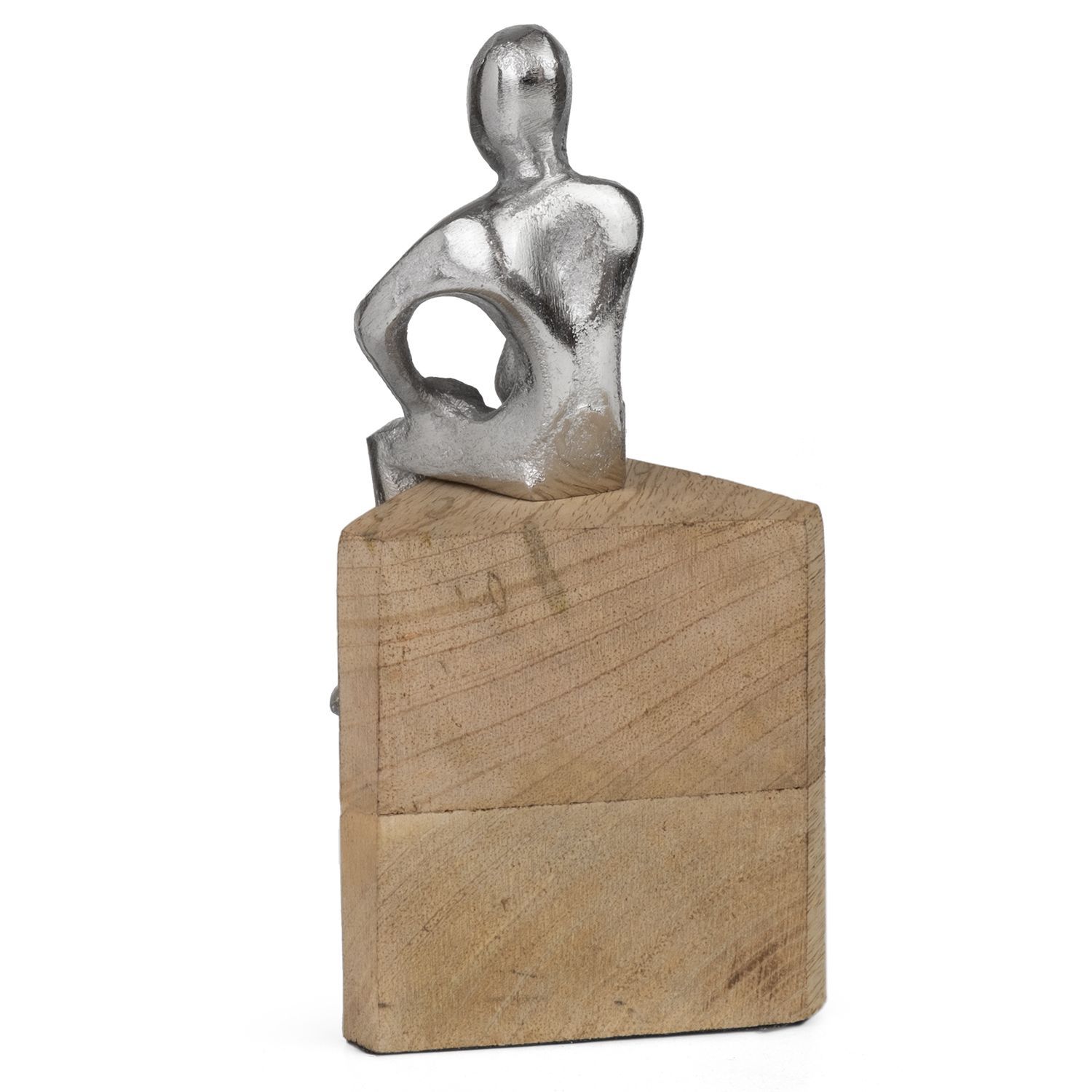 Moderne Dekofigur aus Aluminium auf Mangoholzsockel 9 x 8 x 17,5 cm - sitzende Figur